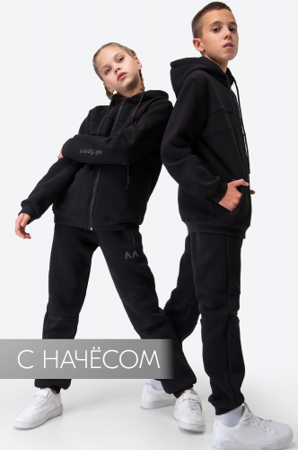 В костюм входит толстовка-зипка на молнии и брюки джоггеры с регулируемым поясом. Кофта со шнурком на капюшоне и карманами на молнии надёжно защитит от ветра, а штаны со слегка зауженным низом смотрятся стильно и удобно сидят. Зимний спортивный костюм идеально подойдёт для подростков: он комфортен для активного дня на улице и практичен для занятий спортом и физкультурой в холодное время года.