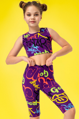 Раскрой себя по-новому этим летом! Дет..показатьский летний костюм для девочек и девочек-подростков выполнен из эластичной и невероятно мягкой ткани бамбук. Синие топ и бриджи для детей станут отличным решением для спорта и повседневных прогулок. Высокая посадка, мягкая резинка и плоские швы – всё для комфорта ребенка. Яркий рисунок поднимет настроение и зарядит энергией на весь день!