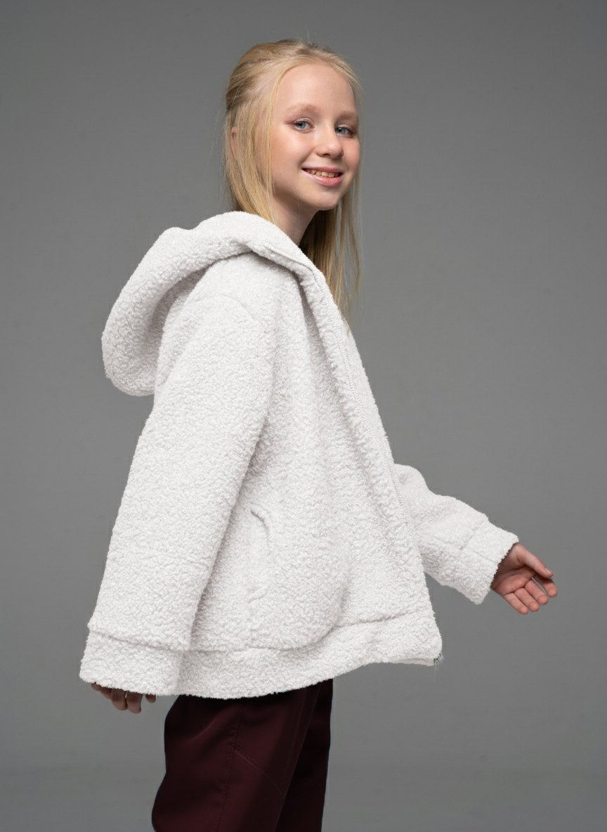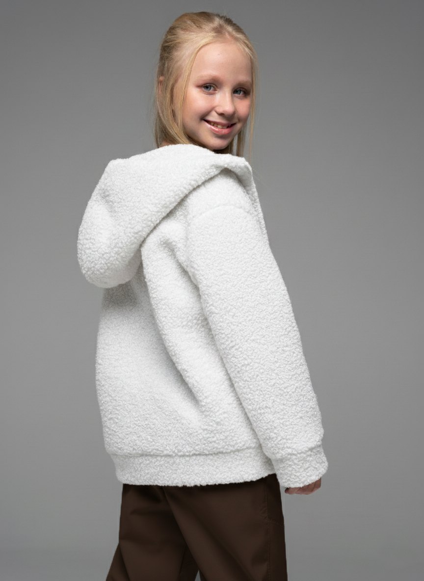 Плюшевая толстовка из шерпа молочного цвета для девочкис длинными рукавами и капюшоном от российского производителя "Looklie" - стильная уютная вещь гардероба для каждой девочки. Кофта тедди с боковыми карманами выполнена из шерпы премиального качества. Детская толстовка свободного силуэта очень мягкая, теплая и приятная к телу. Трендовая кофта для девочки имеет объмные рукава и двойной капюшон . Толстовка тедди для девочки — тренд 2025. Застежка молния позволяет легко надевать и снимать кофту, а также регулировать температуру внутри. Карманы добавляют удобство и функциональность в эту толстовку. Кофта детская плюшевая идеально подходит для прогулок, отдыха и повседневной носки. Качество ткани, а также бережный уход (рекомендована бережная стирка при температуре до 30 градусов) обеспечивает длительный срок службы кофты, материал не растягивается и не выцветает.