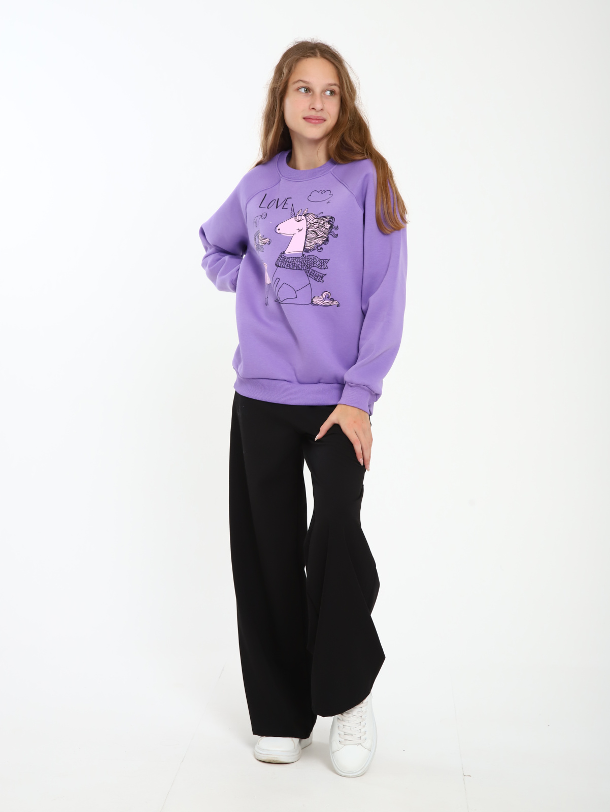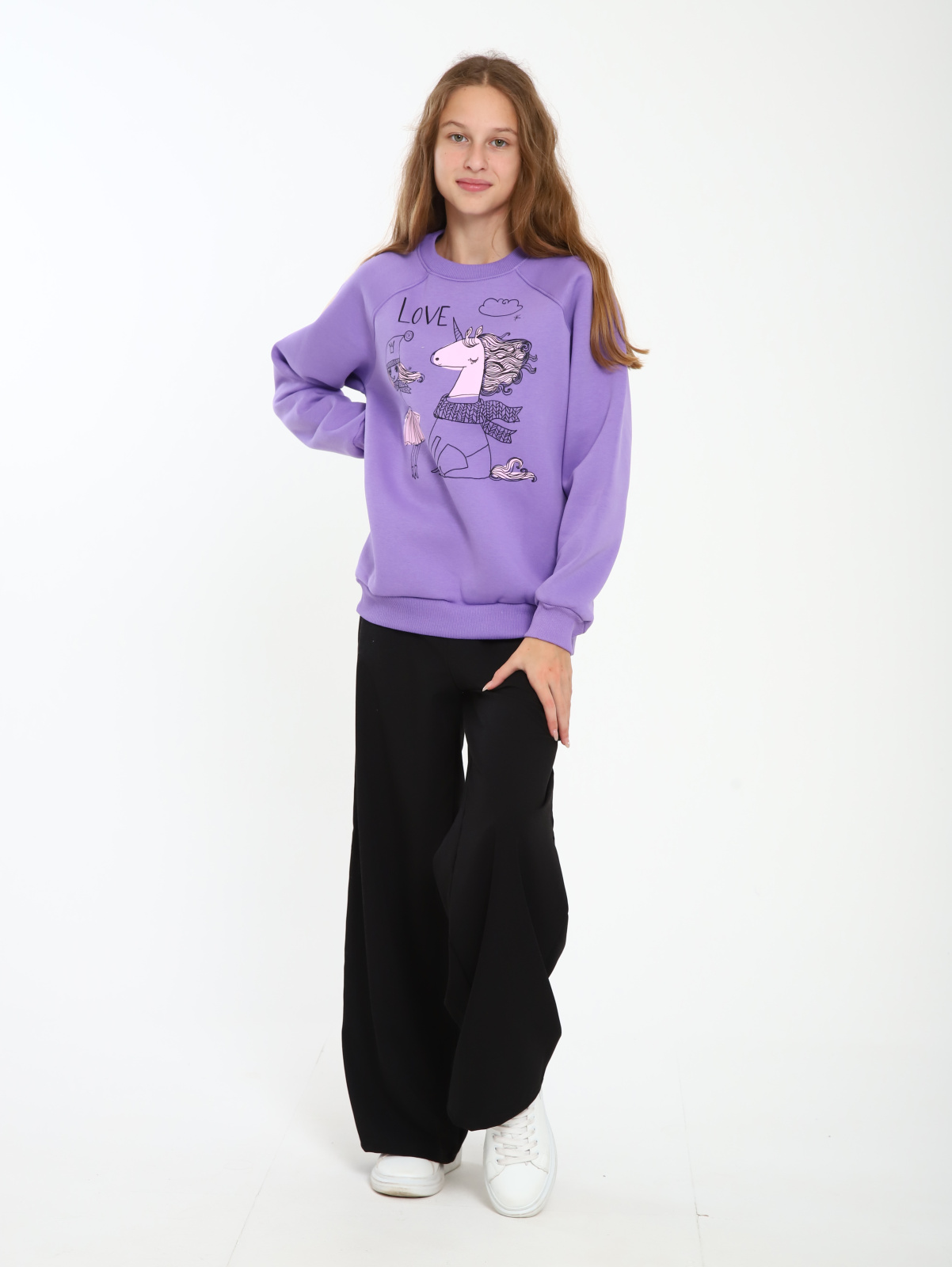 Толстовку для девочки можно легко сочетать с лосинами, леггинсами, классическими брюками, спортвками, джоггерами, джеггинсами, кюлотами и джинсами.