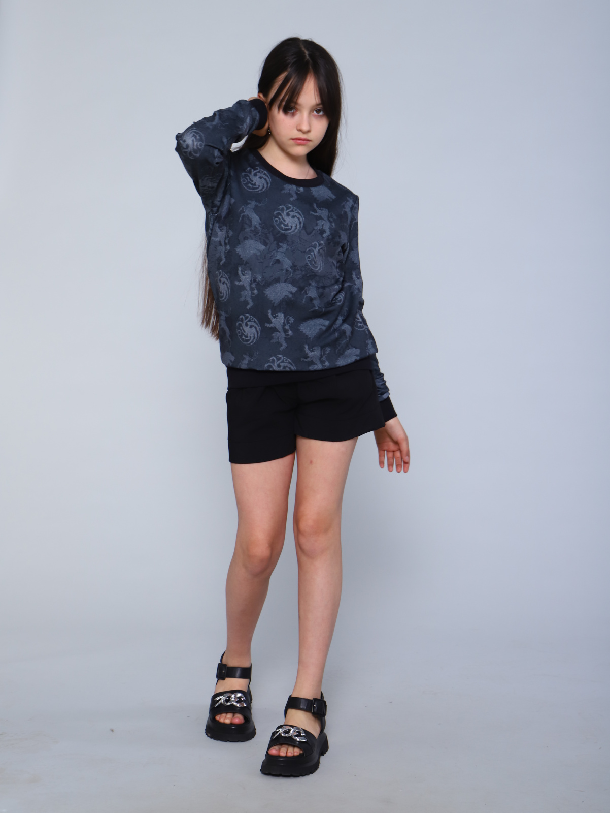 Детский лонгслив сочетается с бриджами, брюками, джоггерами, спортивками, классическими брюками.
