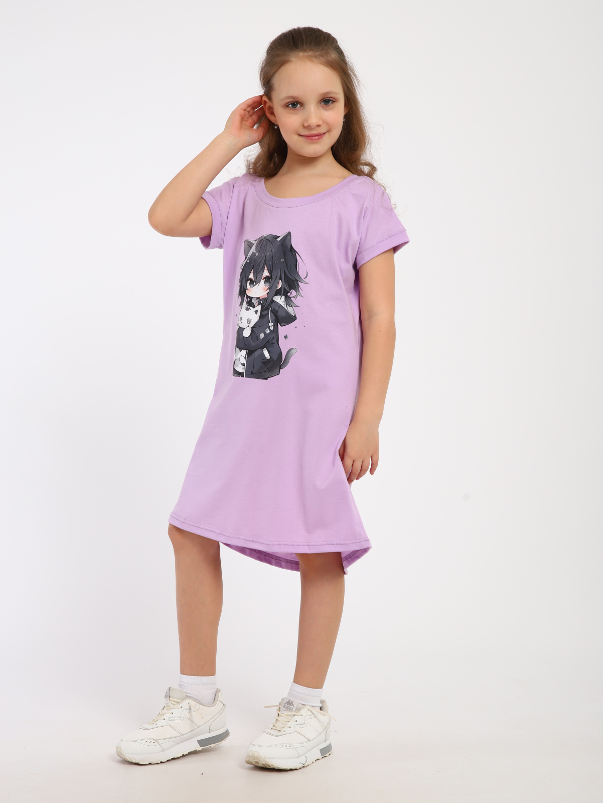 Туника подростковая станет отличным подарком. Туника для школьниц изготовлена из ткани кулирки - тонкого и гладкого  100% трикотажного полотна. Туничка для девочки с прекрасным рисунком Аниме. Удобство этой туники не только в ее натуральном составе, но и в свободном силуэте, не стесняющим движений. Туника может использоваться как сорочка для сна и как домашняя одежда. Рекомендуем ее в качестве приятного подарка дочке, внучке или подружке!