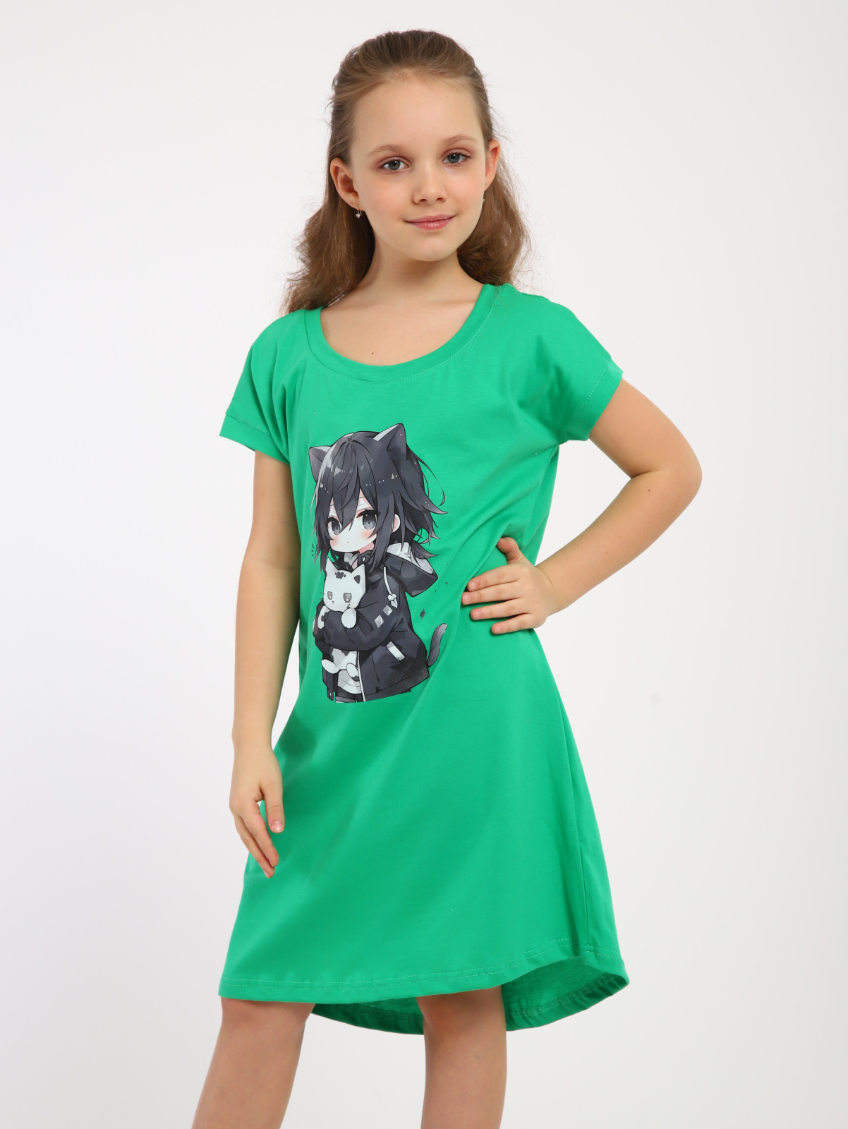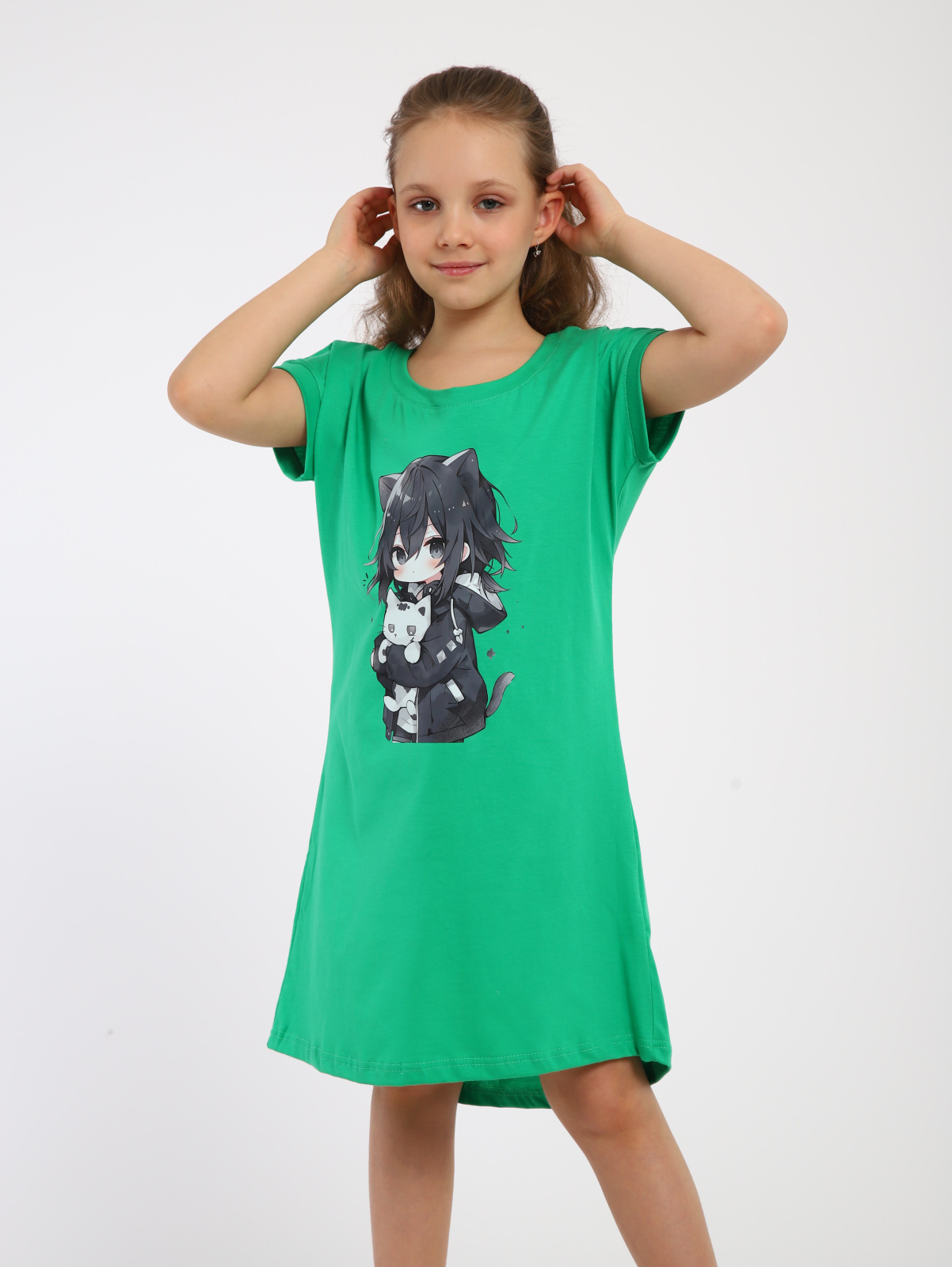 Туника подростковая станет отличным подарком. Туника для школьниц изготовлена из ткани кулирки - тонкого и гладкого  100% трикотажного полотна. Туничка для девочки с прекрасным рисунком Аниме. Удобство этой туники не только в ее натуральном составе, но и в свободном силуэте, не стесняющим движений. Туника может использоваться как сорочка для сна и как домашняя одежда. Рекомендуем ее в качестве приятного подарка дочке, внучке или подружке!