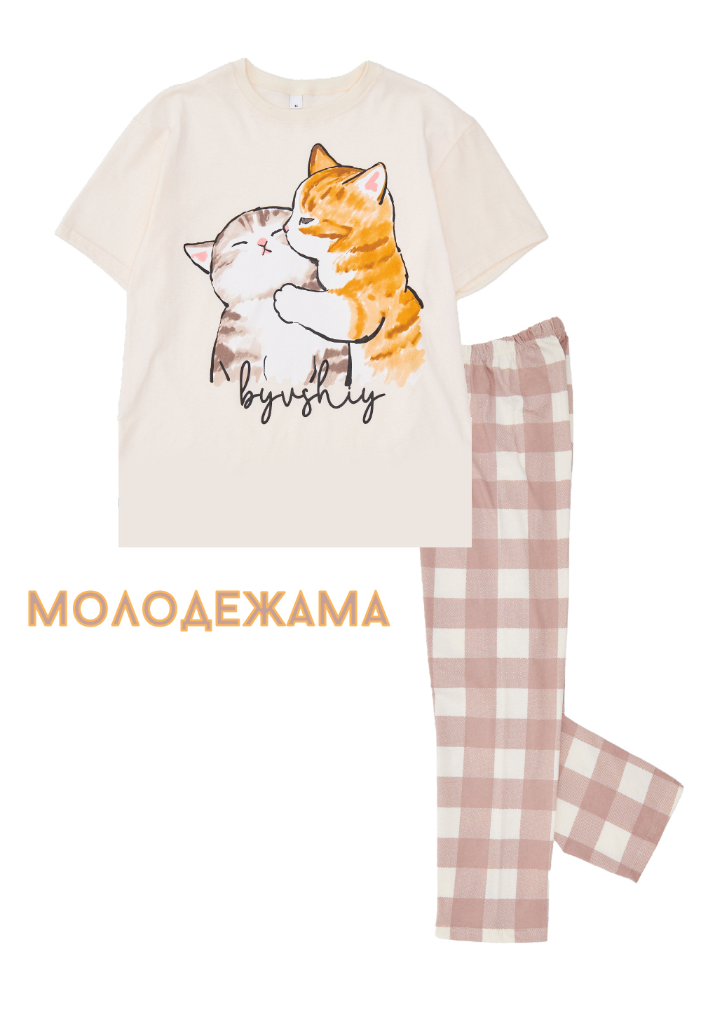 Представляем вашему вниманию стильную и комфортную пижаму для подростков и детей Бывший . Пижама с котиками в стиле харадзюку анимэ -лучший подарок на любой праздник. Пижамный комплект выполнен для удобства ежедневного ношения и комфортного сна. Комплект состоит из брюк в клетку и футболки с принтом. Брюки выполнены из 100% хлопка, что обеспечивает максимальный комфорт и мягкость на ощупь. Тип ткани - хлопок, что гарантирует долговечность и сохранение формы изделия. Футболка с коротким рукавом и принтом в виде сюжетного принта и печати. Пижама оснащена удобной резинкой на поясе брюк и на рукавах футболки, что обеспечивает отличную посадку и комфорт при носке. Выбирая пижаму подростковую y2k, вы получаете стильный и удобный комплект для комфортного сна и отдыха вашего ребенка. Настроение праздника и отличный подарок.