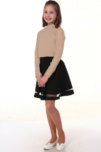 Изящная водолазка для девочки привлекает внимание ажурными рукавами и придаёт образу лёгкости.