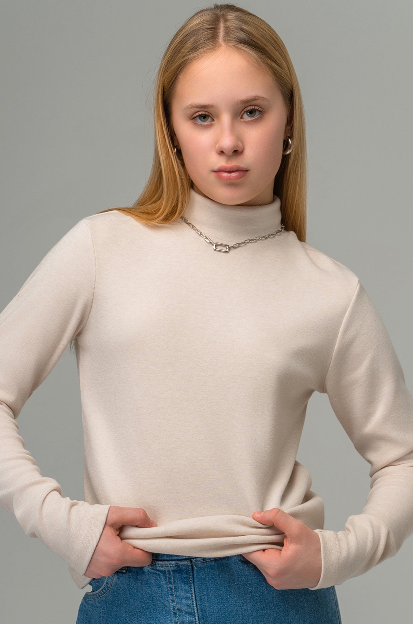 Подростковый лонг с горлом — универсальное решение на каждый день. Бежевый бадлон из трикотажа подойдет для школы и для прогулок, станет стильной основой для образов на весну и осень.