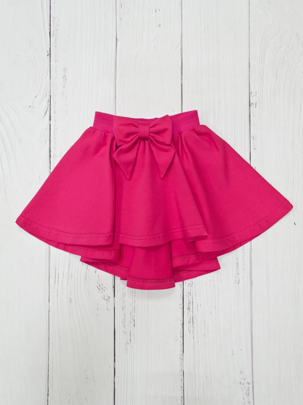 Очаровательная юбка с пышным подолом и аккуратным бантом на поясе станет любимой вещью в гардеробе каждой девочки. Выполнена из мягкого футера двухнитки с лайкрой — приятного к телу, эластичного и износостойкого материала, который отлично держит форму.