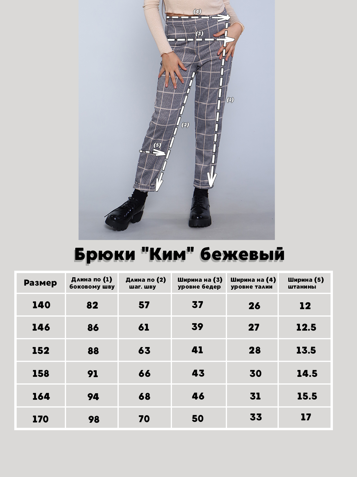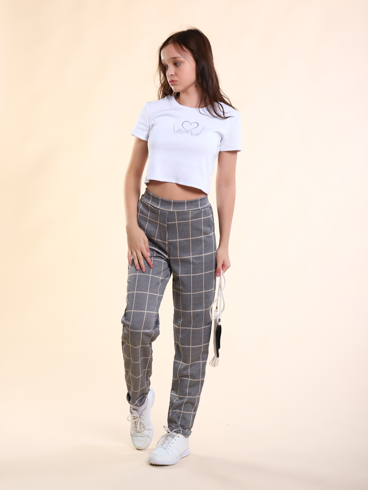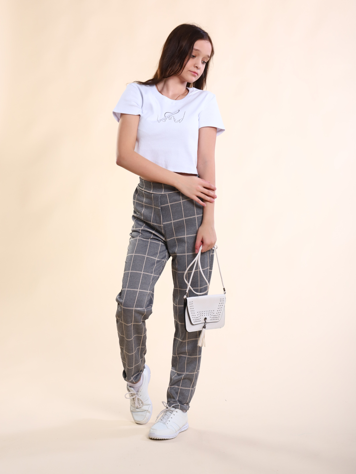 Брюки для девочки-подростка в клетку.