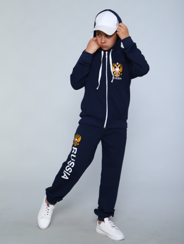 Детский физкультурный костюм с гербом сшит для для мальчиков и девочек подростков. Куртка спортивного костюма двойки на молнии, с капюшоном, на груди герб России (РФ). Брюки джоггеры с манжетами внизу, с поясом на резинке и шнурком для фиксации на талии, на правой ноге крупная надпись "RUSSIA". Комплект сшит из тонкого без начеса трикотажа для весны и лета, прогулок и походов, пикников. Для активного отдыха и занятий спортом на свежем воздухе. Отличается подростковый комплект-двойка своим стильным и в то же время сдержанным дизайном и удобством. Посадка штанишек для физкультуры средняя, удобная. Модная и функциональная олимпийка с большим объемным капюшоном, может использоваться в качестве отдельного верха на лето . Рукава молодежного спортивного костюма - реглан. Спереди карманы "Кенгуру". Костюм детский спортивный в темной серой черной гамме прекрасно подойдет для активных занятий физкультурой в школе и игр, для путешествий и туристических походов. Для командных игр и тренировок, на летний и весенний сезон, теплую осень. Повседневно комплект с худи с капюшоном для юношей и девушек может быть использован тоже. Натуральный состав - это еще одно преимущество комплекта одежды черного цвета , ведь он гарантирует комфорт и практичность. Цветной школьный тренировочный комплект для занятий физкультурой в спортивном зале - практичный, немаркий. Подойдет трикотажный костюм и высоким школьникам, поскольку размерный ряд до 170 роста. Если Ваш ребенок активный, любит играть в "войнушки", участвует в спортивном ориентировании, любит походы, составляет компанию папе на рыбалке, то этот костюм будет ему замечательным подарком! Это прекрасный полезный подарок активному мальчику или девочке!