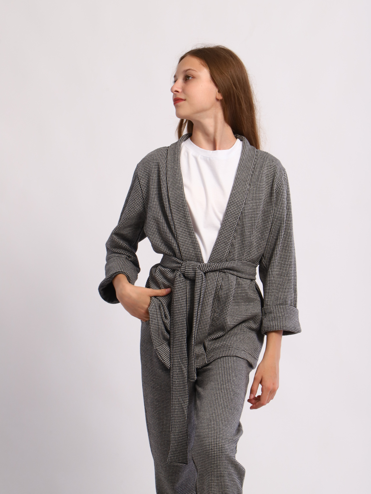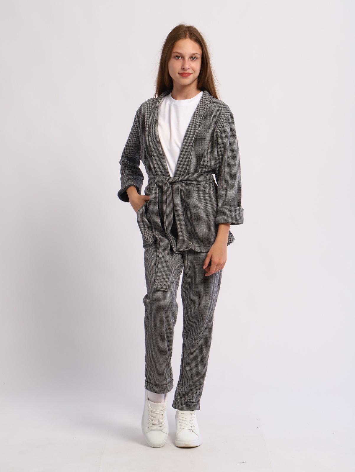 Трикотажный костюм школьный для девочки состоит из жакета с поясом кроя оверсайз и брюк на резинке прямого свободного кроя. Брюки с высокой и комфортной посадкой и эластичным поясом на резинке. Штаны длиной 7/8. в боковых швах - карманы. Пиджак школьный можно носить отдельно в повседневной жизни, комплектуя его например, с школьными шортиками или юбками. Жакет объемный с длинным рукавом, на талии фиксируется поясом. базовый универсальный комплект школьной одежды можно носить как с кроссовками или кедами, так и с классическими туфлями на высоком или низком каблуке. Нарядный костюм для торжеств сочетается и с шелковыми блузками. Школьный брючный наряд для девочки можно надеть не только на уроки но и на праздничные мероприятия. Деловой классический стиль так же востребован и повседневно. Натуральны хлопковый состав позволяет чувствовать удобство и комфорт. Базовая классическая модель костюма школьного очень идет девочкам постарше. Это прекрасный подарок к началу учебного года на 1 сентября или на 8 марта! Размерный ряд достаточно широк, до 164 роста.