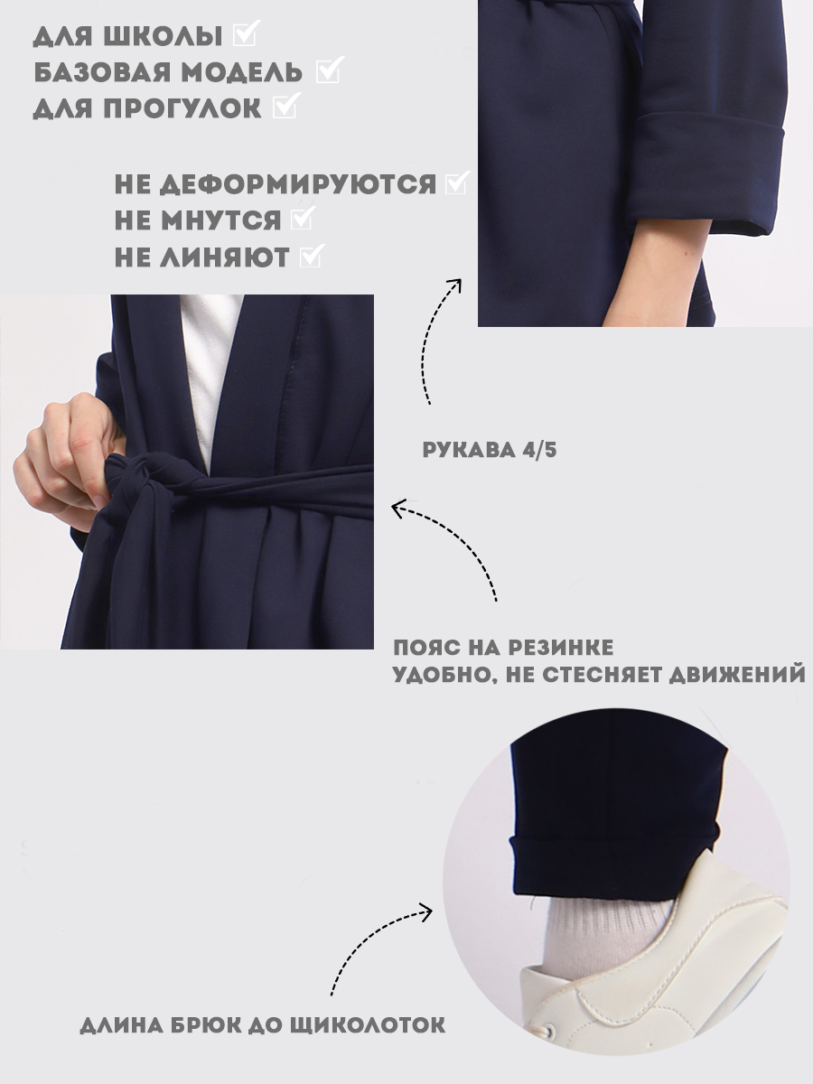 Трикотажный костюм школьный для девочки состоит из жакета с поясом кроя оверсайз и брюк на резинке прямого свободного кроя. Школьная форма имеет брюки с высокой и комфортной посадкой и эластичным поясом на резинке. Штаны длиной 7/8. в боковых швах - карманы. Пиджак школьный можно носить отдельно в повседневной жизни, комплектуя его например, с школьными шортиками или юбками. Жакет объемный с длинным рукавом, на талии фиксируется поясом. базовый универсальный комплект школьной одежды можно носить как с кроссовками или кедами, так и с классическими туфлями на высоком или низком каблуке. Нарядный костюм для торжеств сочетается и с шелковыми блузками. Школьный брючный наряд для девочки можно надеть не только на уроки но и на праздничные мероприятия. Деловой классический стиль так же востребован и повседневно. Натуральны хлопковый состав позволяет чувствовать удобство и комфорт. Базовая классическая модель костюма школьного очень идет девочкам постарше. Это прекрасный подарок к началу учебного года на 1 сентября или на 8 марта! Размерный ряд достаточно широк, до 164 роста.