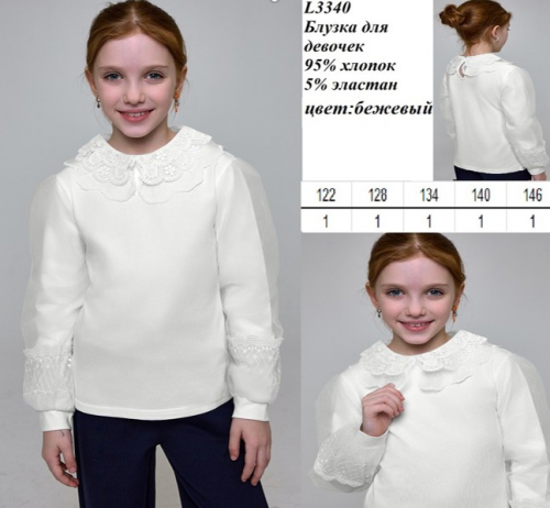 L3285 (122-146) Блузка для девочек длин. рукав, белый, BROSTEM