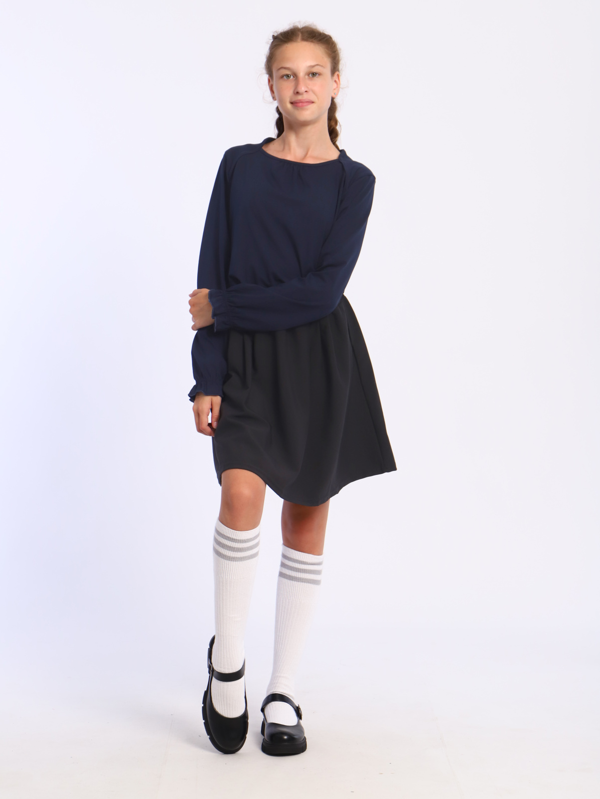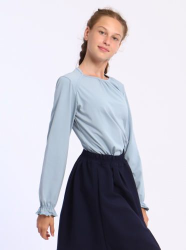 Модный серо-голубой свитшот практичен, подойдет для школьной формы, а также для дома и праздника. Хорошая идея для подарка девочке на любой праздник.
