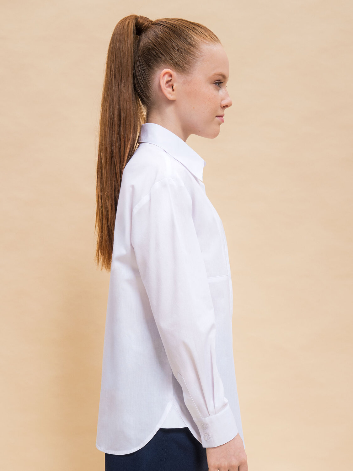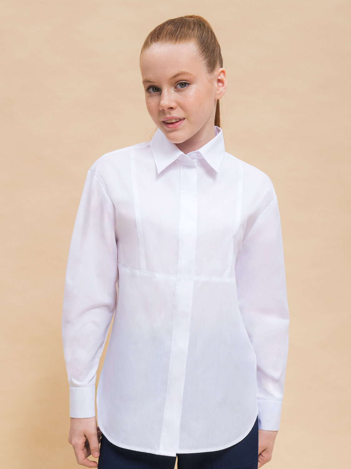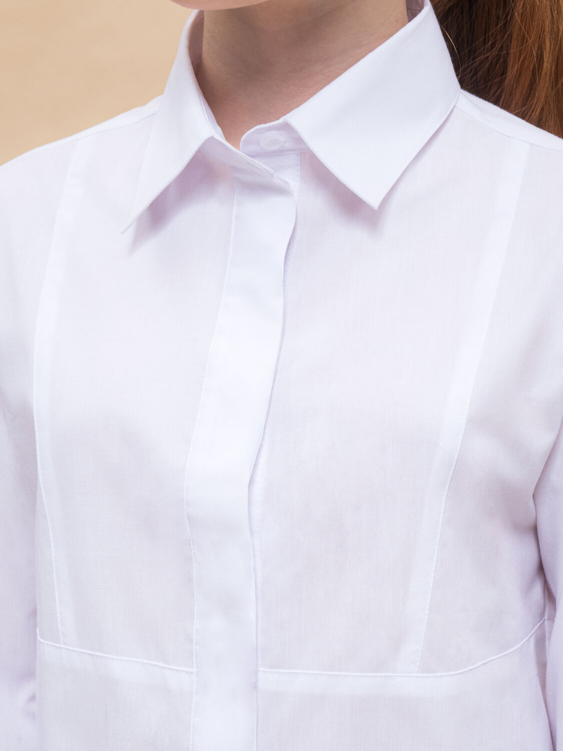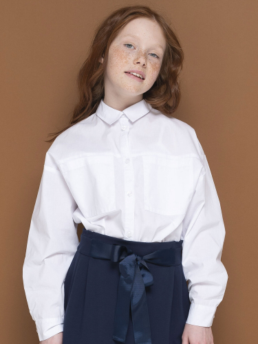 Блузка детская свободного кроя для девочки. Школьная блузка с классическим отложным воротничком великолепно подходит девочкам с разными типами фигуры. Удобная потайная центральная застёжка на петли-пуговицы — классический вариант. По переду лаконичный декор в виде наклонных рельефов, идущих по подреза. Фигрная линия низа, в боковые уголки разрезов вставлен декоративный усилитель в виде треугольничка из основной ткани. В составе ткани преобладает высококачественный хлопок — блузка в школу для девочки мягкая, воздухопроницаемая и комфортная для ребёнка. Полиэстер помогает не терять форму и отличный внешний вид — изделие прослужит не один сезон. Для школьных рубашек мы используем сорочечную ткань, плотностью 100гр/м2. Школьная блузка для девочки лаконичного дизайна, без принта, её легко сочетать с различными брюками, юбками, сарафанами. Красивая и практичная блузка белая для девочки — подходит как для повседневной носки, так и для более торжественных случаев. Помните о правильном уходе за изделием: рекомендуется стирать при температуре не выше 30 °C, без предварительного замачивания, с изнанки. Это поможет сохранить качество и цвет блузки на долгое время. Не забывайте о выборе правильного размера. Используйте таблицу размеров на фотографии, чтобы выбрать подходящий вариант. Обратите внимание, что цвет товара на экране вашего устройства может отличаться от реального.