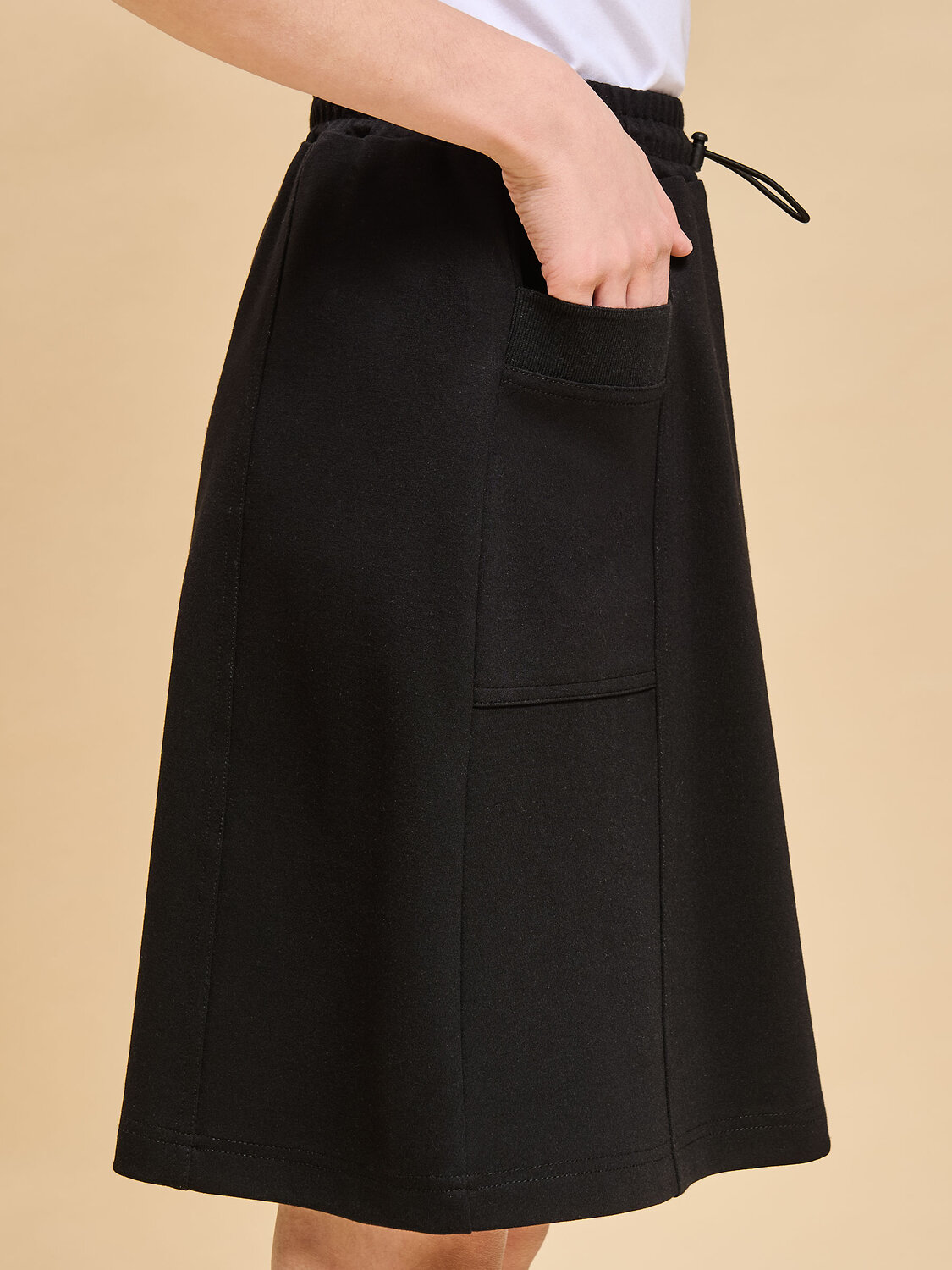Школьная юбка для девочки. Трикотажная юбка мягкая, не сковывает движений и великолепно садится на девочек с любой фигурой за счёт продуманного кроя. Юбка А силуэт декорирована вертикальными рельефами по переду и спинке. Боковые карманы украшены по верху декоративной рибаной — оригнальная и стильная деталь. В поясе широкая резинка с двойной прострочкой — не давит на живот и не перекручивается. В поясе предусмотрен внутренний эластичный шнур со стопером — можно легко регулировать объём изделия. В составе ткани преобладает высококачественный воздухопроницаемый хлопок — ребёнку не жарко, кожа дышит. Благодаря полиамиду и эластану юбка для девочек сохраняет отличный внешний вид и форму в течение продолжительного времени. Модель однотонная, без принта. В ассортименте представлены юбки универсальных цветов. Они легко сочетаются с блузками, рубашками, водолазками различных оттенков. Можно легко менять образ, надев нарядную или повседневную блузку, в зависимости от ситуации. Юбка с карманами — красивый и практичный выбор школьной формы для девочки. Рекомендуемый уход: стирать при температуре не выше 30 °С, без предварительного замачивания, с изнанки, расправить перед сушкой. Выбирайте нужный размер по таблице размеров на фото. Цвет товара на экране вашего устройства может отличаться от цвета изделия вживую.