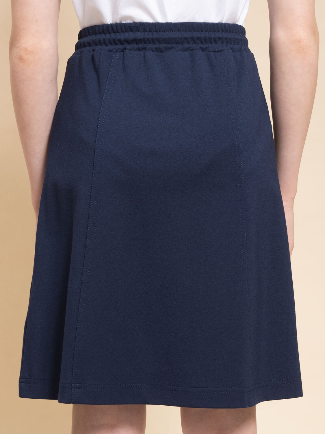 Школьная юбка для девочки. Трикотажная юбка мягкая, не сковывает движений и великолепно садится на девочек с любой фигурой за счёт продуманного кроя. Юбка А силуэт декорирована вертикальными рельефами по переду и спинке. Боковые карманы украшены по верху декоративной рибаной — оригнальная и стильная деталь. В поясе широкая резинка с двойной прострочкой — не давит на живот и не перекручивается. В поясе предусмотрен внутренний эластичный шнур со стопером — можно легко регулировать объём изделия. В составе ткани преобладает высококачественный воздухопроницаемый хлопок — ребёнку не жарко, кожа дышит. Благодаря полиамиду и эластану юбка для девочек сохраняет отличный внешний вид и форму в течение продолжительного времени. Модель однотонная, без принта. В ассортименте представлены юбки универсальных цветов. Они легко сочетаются с блузками, рубашками, водолазками различных оттенков. Можно легко менять образ, надев нарядную или повседневную блузку, в зависимости от ситуации. Юбка с карманами — красивый и практичный выбор школьной формы для девочки. Рекомендуемый уход: стирать при температуре не выше 30 °С, без предварительного замачивания, с изнанки, расправить перед сушкой. Выбирайте нужный размер по таблице размеров на фото. Цвет товара на экране вашего устройства может отличаться от цвета изделия вживую.
