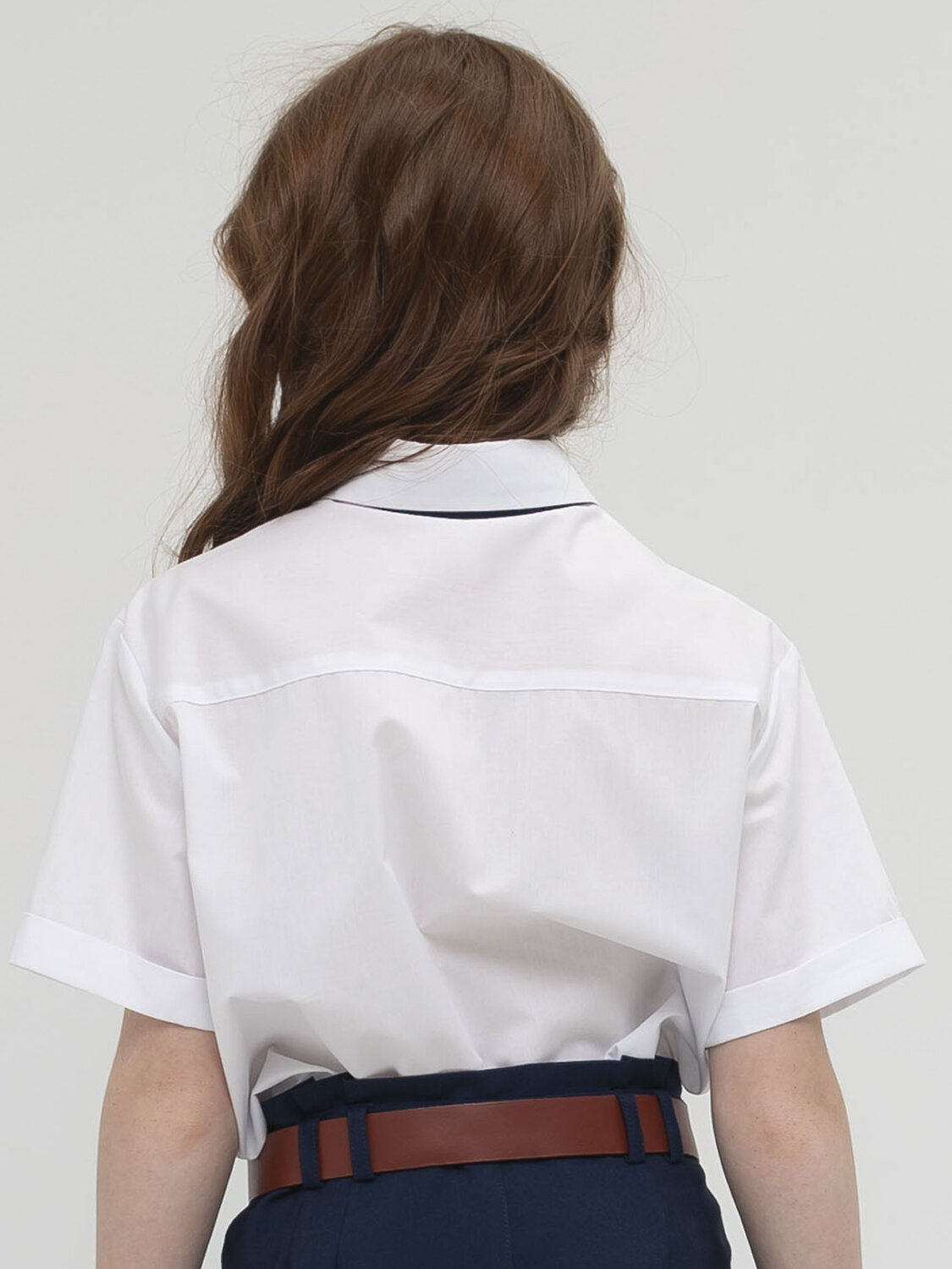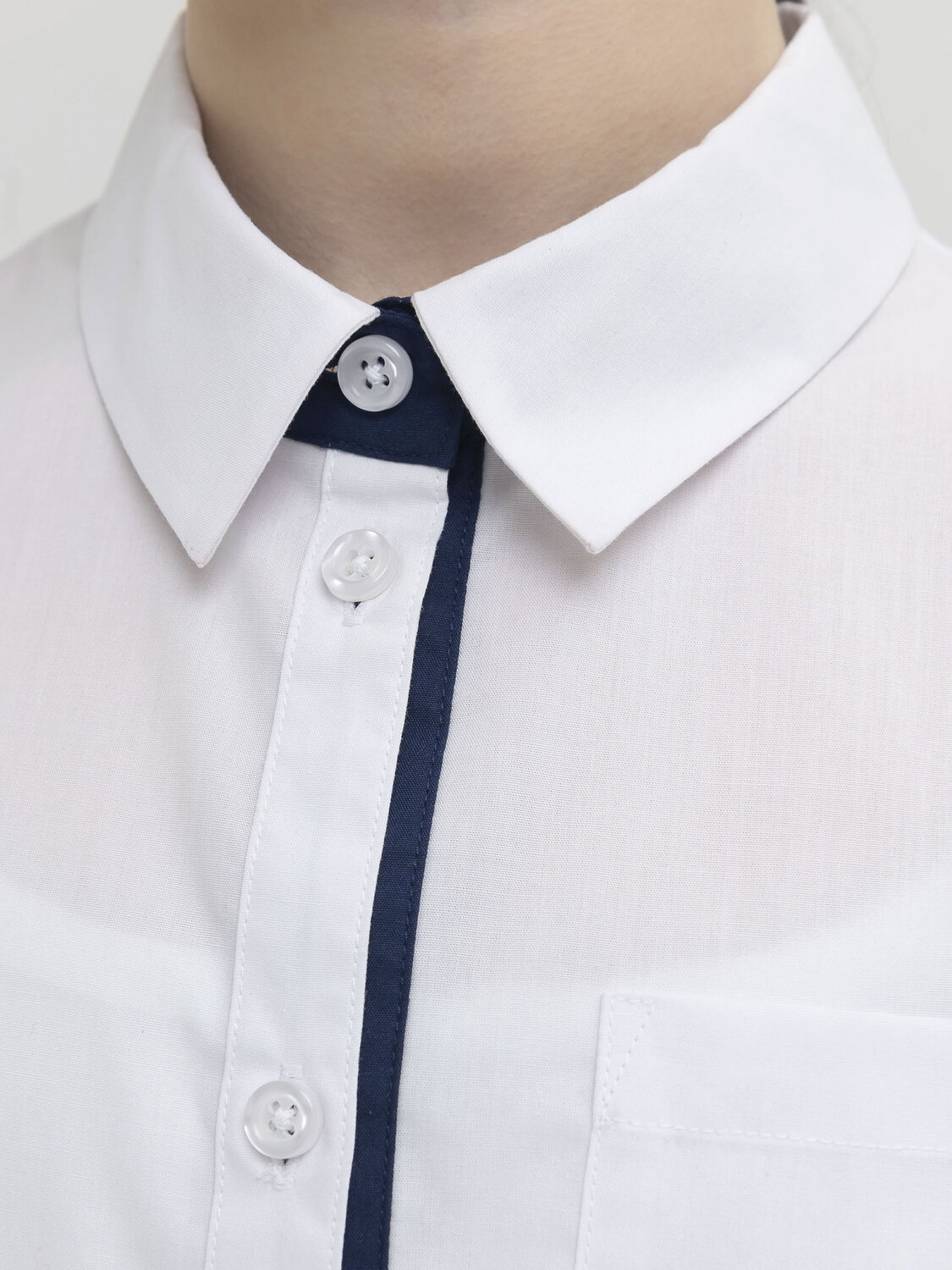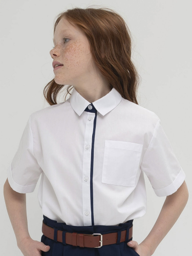 Школьная рубашка для девочки с любой фигурой. Практичная и прочная ткань отлично держит форму, легко гладится и мало мнётся. Свободный силуэт даёт возможность быть активной не только на уроках, но и на переменах. Внутренняя планка и стойка воротника выполнены из ткани контрастного цвета. Это разбавляет официальный стиль и позволяет не стирать рубашку каждый день. В нагрудный карман есть возможность положить небольшую мелочь. Отлично смотрится с брюками, платьями и юбками.