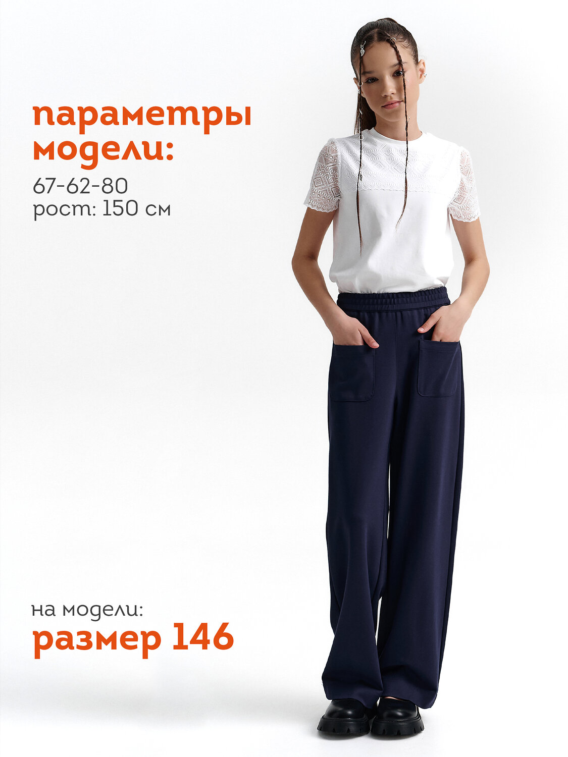 Модные, удобные и универсальные — брюки, которые идеально подойдут для школы и активного повседневного образа. Прямой крой без лишнего объёма делает силуэт аккуратным и современным, отлично подходит для всех типов фигур, включая полных деток, обеспечивая комфорт и свободу движений. Пояс выполнен с внутренней резинкой и дополнен утяжкой на шнурке — удобно, надёжно и без давления. Брюки легко сидят на фигуре, не сползают и не перекручиваются даже при активной носке. Стильная деталь — накладные карманы с округлыми уголками. Они добавляют образу индивидуальность и «городской» характер, оставаясь при этом уместными в школьной форме. Материал практичный и приятный к телу: не мнётся, не вытягивается, легко стирается и быстро сохнет. Подходят как для школьных занятий, так и для повседневных дел — от прогулок до поездок. Брюки, которые удобно носить, легко сочетать и приятно не снимать. Школьный стиль — с характером. Используйте таблицу размеров на фотографии, чтобы выбрать подходящий размер. Обратите внимание, что цвет товара на экране вашего устройства может отличаться от реального.