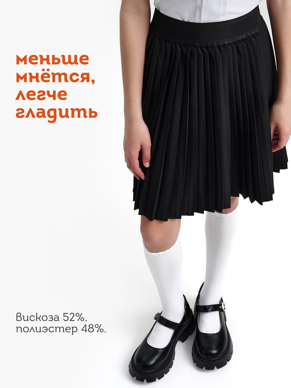 Юбка в складку — идеальный выбор для школьной формы и повседневной носки. Мелкое плиссе шириной 5 мм создает аккуратный и ровный рисунок, который не мнётся и сохраняет форму после целого учебного дня. Такая плиссировка придаёт лёгкий объём, не утяжеляя силуэт, обеспечивая комфорт и свободу движений для школьницы. Пояс юбки обработан широкой эластичной резинкой — она тянется и подстраивается под талию ребёнка, не сдавливая и не мешая в движении. Резинка помогает юбке плотно сидеть на талии, не сползать во время уроков и активных перемен. Юбка отлично подходит для школьной формы для девочек, сочетается с разными блузами и кофточками, и при этом остаётся удобной для повседневной носки после школы. Выбирайте нужный размер по таблице размеров на фото. Цвет товара на экране вашего устройства может отличаться от цвета изделия вживую.