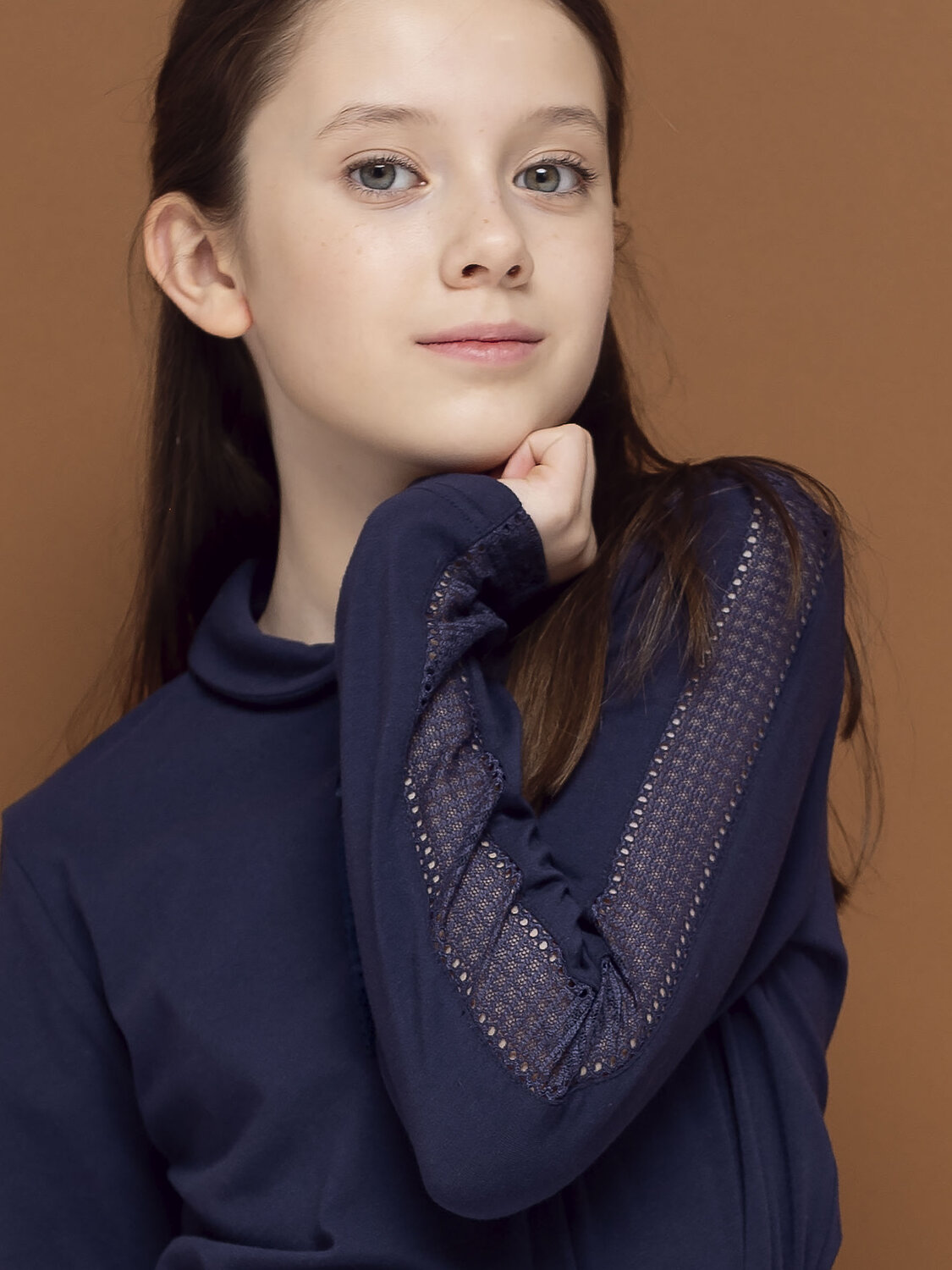 Школьный джемпер из хлопкового трикотажа. Мягкая, комфортная ткань хорошо держит форму и не растягивается. Эластичное кружево по рукаву, круглый воротник с бантом из репсовых и кружевных лент, закрепленный пуговицей с жемчужиной и стразами стильные фишки этой модели. Удобная застёжка сзади воротника позволит легко надеть джемпер и не испортить причёску. Этот красивый практичный джемпер станет любимым в гардеробе юной модницы.