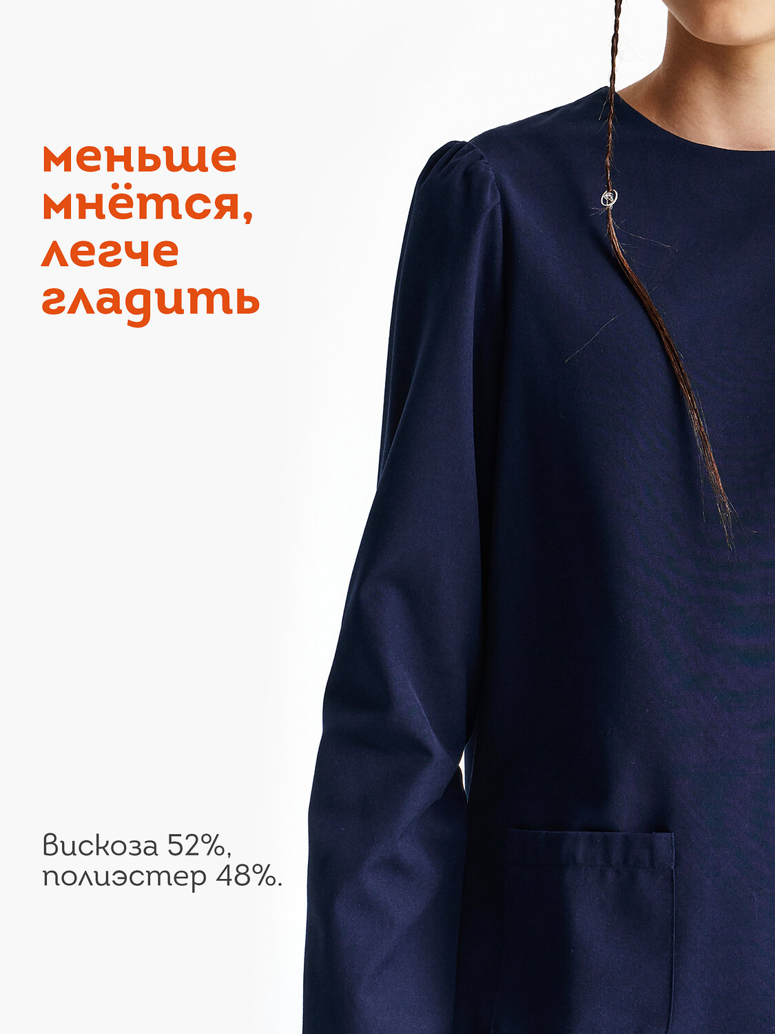 Школьное платье А-силуэта — строгость формы и комфорт на каждый день. Лаконичный дизайн, продуманный крой и съёмный декоративный воротник — модель, которая подойдёт и для школы, и для повседневной носки после уроков. Свободный силуэт с лёгким расширением к низу обеспечивает свободу движения и аккуратный внешний вид. Нагрудные вытачки и средний шов на спинке улучшают посадку и делают платье более структурированным. Два накладных кармана спереди со скруглёнными краями — удобно и функционально. Рукав прямой, втачной, с лёгкой сборкой — сидит аккуратно, не сковывает. Плечо чуть укорочено, что придаёт современный силуэт. Горловина круглая, с застёжкой на петлю и пуговицу по спинке — просто надевать самостоятельно. Съёмный воротник украшен рюшей из кружева. С воротником — строгий школьный образ, без него — повседневное платье. Выбирайте нужный размер по таблице размеров на фото. Цвет товара на экране вашего устройства может отличаться от цвета изделия вживую.