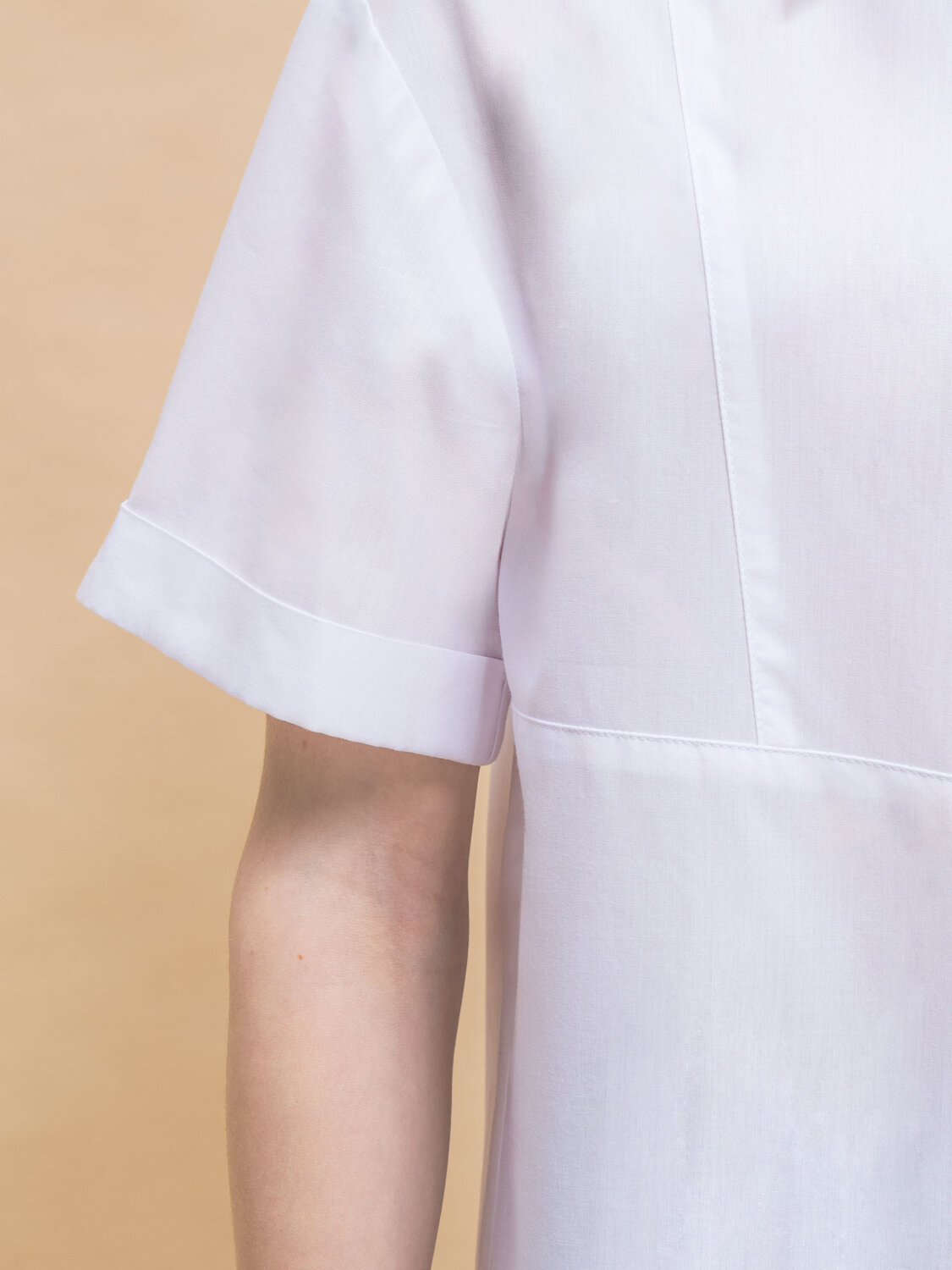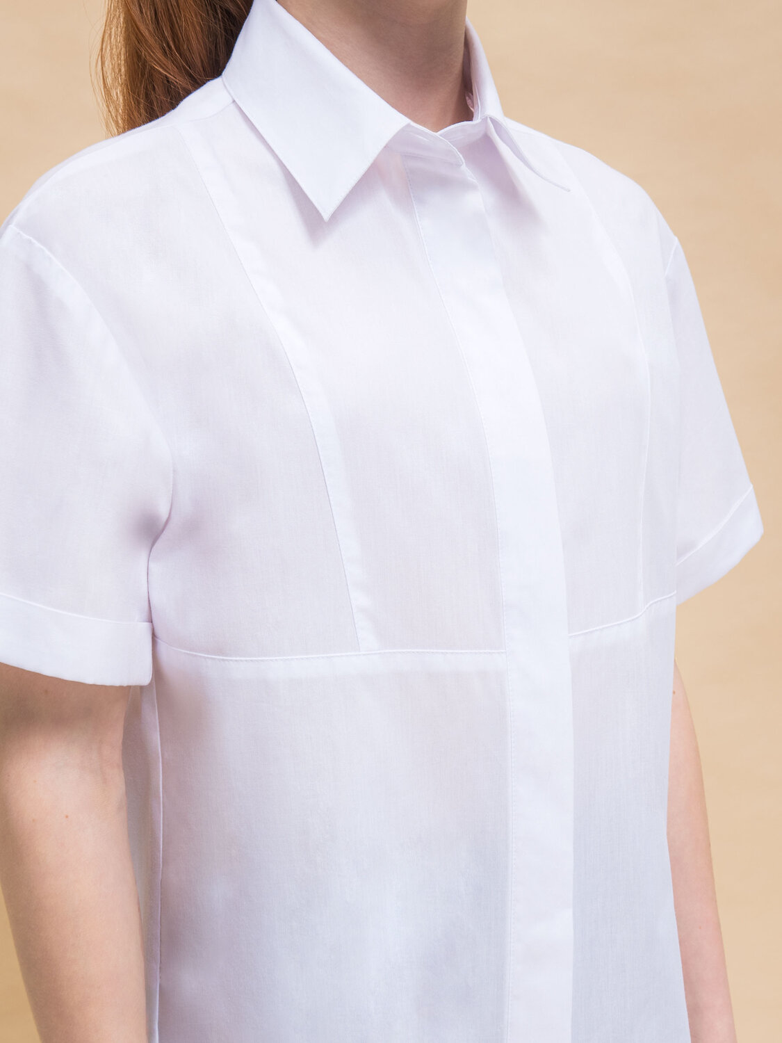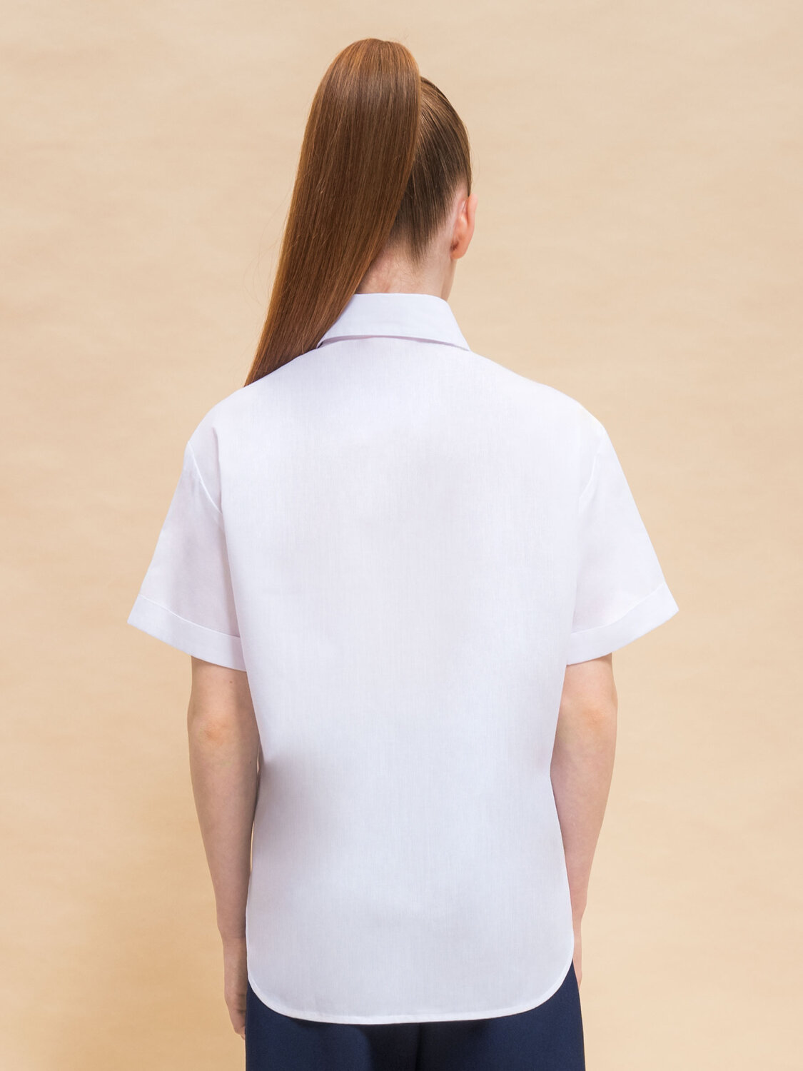 Блузка детская свободного кроя для девочки. Школьная блузка с классическим отложным воротничком великолепно подходит девочкам с разными типами фигуры. Удобная потайная центральная застёжка на петли-пуговицы — классический вариант. По переду лаконичный декор в виде наклонных рельефов, идущих по подреза. Фигрная линия низа, в боковые уголки разрезов вставлен декоративный усилитель в виде треугольничка из основной ткани. В составе ткани преобладает высококачественный хлопок — блузка в школу для девочки мягкая, воздухопроницаемая и комфортная для ребёнка. Полиэстер помогает не терять форму и отличный внешний вид — изделие прослужит не один сезон. Школьная блузка для девочки лаконичного дизайна, без принта, её легко сочетать с различными брюками, юбками, сарафанами. Красивая и практичная блузка белая для девочки — подходит как для повседневной носки, так и для более торжественных случаев. Помните о правильном уходе за изделием: рекомендуется стирать при температуре не выше 30 °C, без предварительного замачивания, с изнанки. Это поможет сохранить качество и цвет блузки на долгое время. Не забывайте о выборе правильного размера. Используйте таблицу размеров на фотографии, чтобы выбрать подходящий вариант. Обратите внимание, что цвет товара на экране вашего устройства может отличаться от реального.