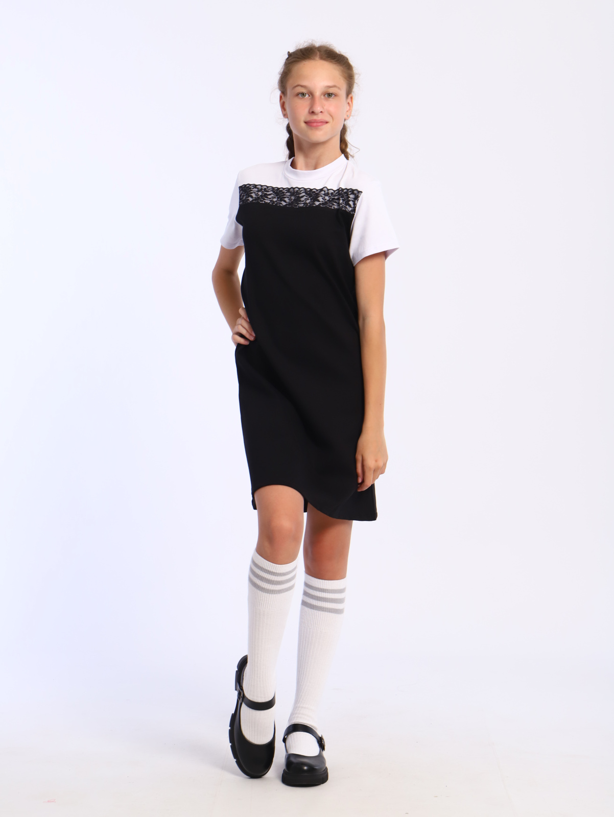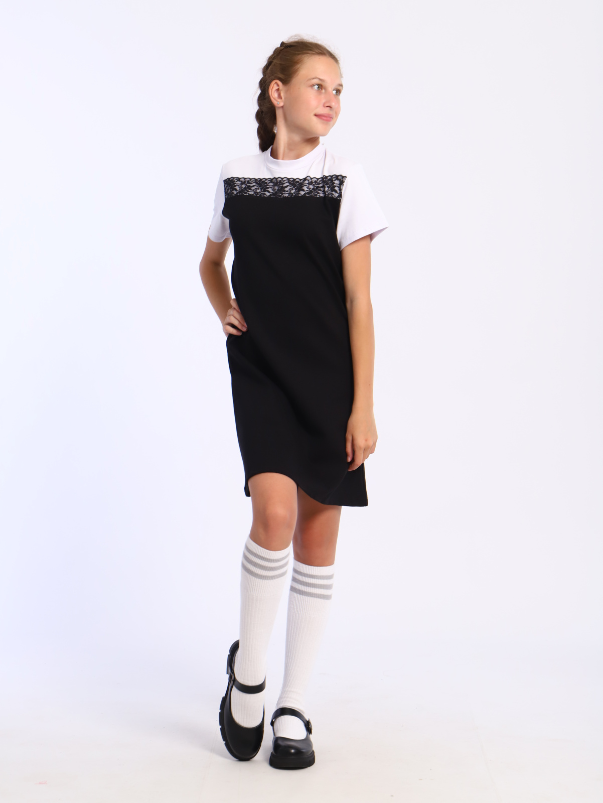 Подростковое платье прямогокроя с отрезной кокеткой по линии груди.