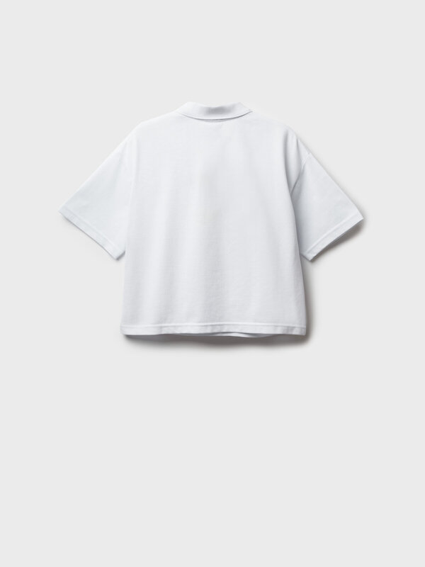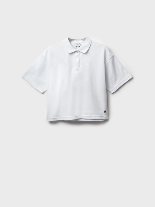 Классическое белое оверсайз поло с коротким рукавом для девочки