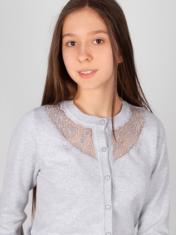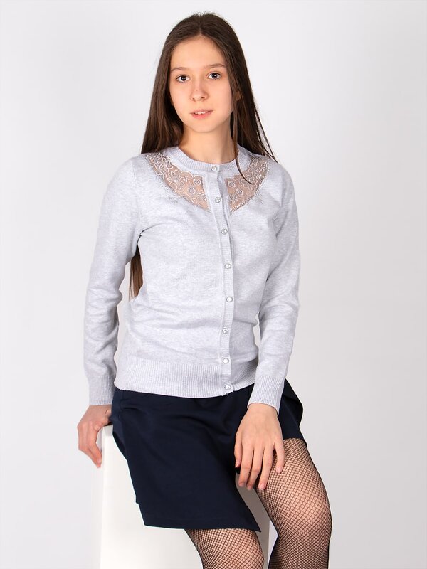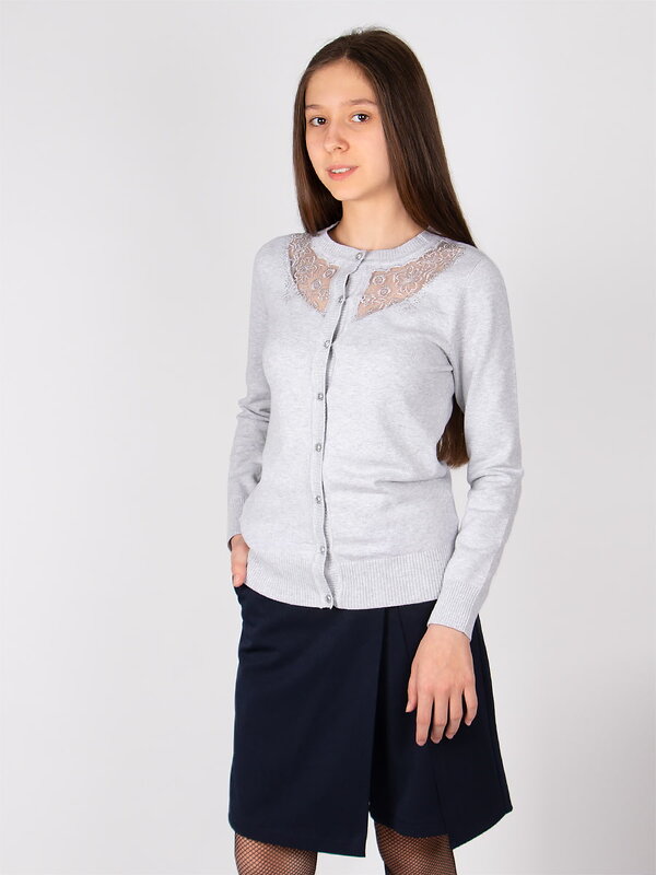 Изысканный кардиган на пуговицах, с прозрачной вставкой из фатина.