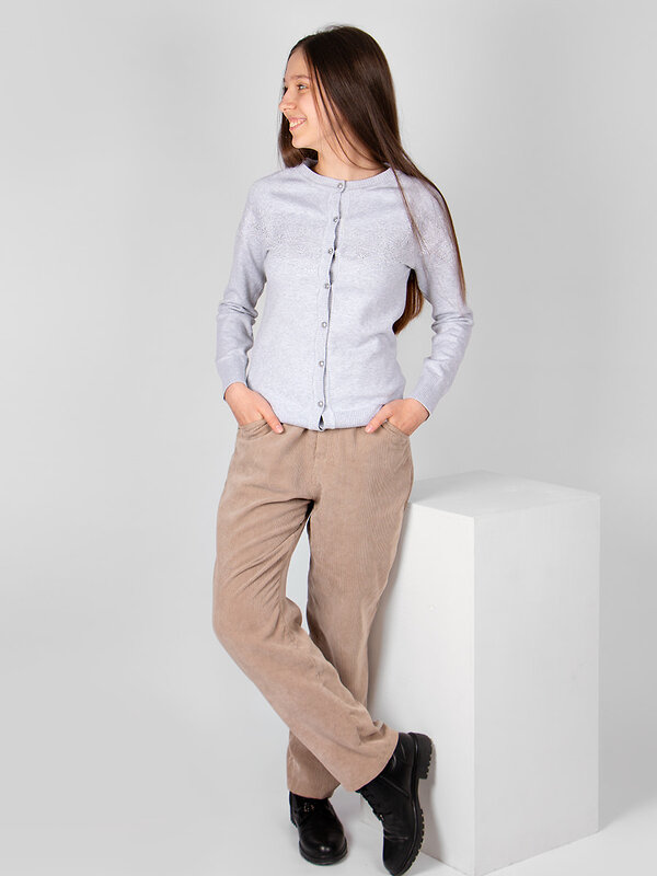 Кардиган прекрасно сочетается как с юбками, так и с брюками.
