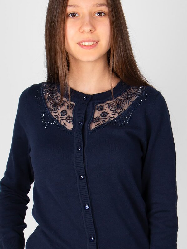 Изысканный кардиган на пуговицах, с прозрачной вставкой из фатина.