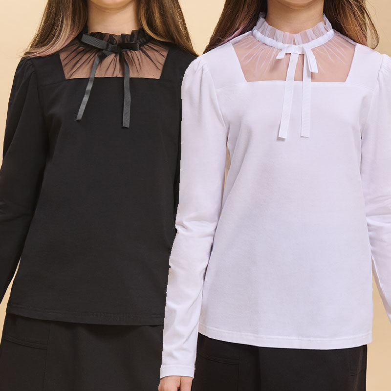 Состав: 93%хлопок 7%эластан, вставка: 100%полиамидОписание: Блузка в школу для девочки. Комфортная и мягкая трикотажная блузка полуприлегающего силуэта подходит девочкам с разной фигурой и не стесняет движений ребёнка. Блузка детская украшена оригинальной декоративной вставкой из мягкой тонкой сетки с рюшей по горловине. Горловина дополнена лентой, с её помощью имитируется невысокий воротник-стойка с бантом спереди. Застёжка на пуговицу расположена сзади. В составе ткани преобладает высококачественный хлопок — ребёнку не жарко, кожа дышит. Благодаря эластану школьная блузка сохраняет форму и первозданный внешний вид в течение длительного времени. Модель однотонная, без принта. В ассортименте представлены блузки для девочек школьные универсальных цветов. Они без проблем сочетаются с различными брюками, юбками, сарафанами. Блузка детская подходит как для повседневной носки в школу, так и для более торжественного случая — в зависимости от того, с чем её надеть. Отличный выбор школьной формы для вашей девочки. Помните о правильном уходе за изделием: рекомендуется стирать при температуре не выше 30 °C, без предварительного замачивания, с изнанки. Это поможет сохранить качество и цвет блузки на долгое время. Не забывайте о выборе правильного размера. Используйте таблицу размеров на фотографии, чтобы выбрать подходящий вариант. Обратите внимание, что цвет товара на экране вашего устройства может отличаться от реального.