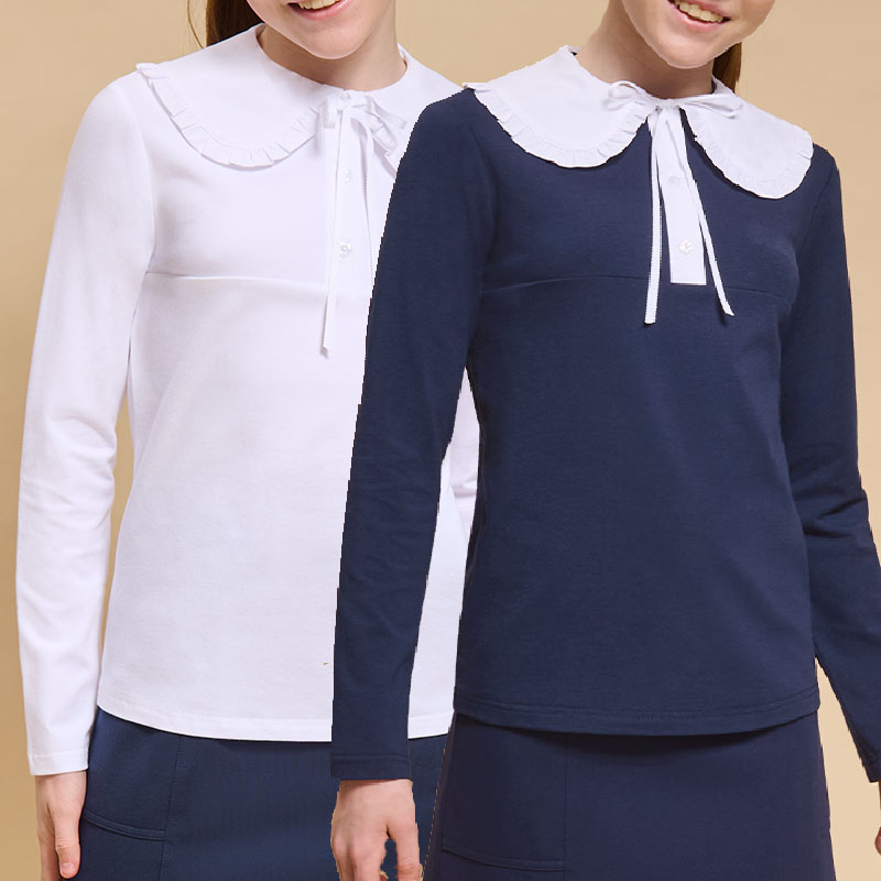 Состав: 93%хлопок 7%эластан, вставка: 60%хлопок 40%полиэстерОписание: Школьная блузка для девочки. Комфортная трикотажная блузка умеренного объёма хорошо садится на девочек с разной фигурой и не сковывает движений ребёнка. По переду планка с застёжкой на пуговицы — ребёнку удобно надевать и снимать блузку. Модная фишка изделия — большой фигурный воротник из швейной ткани, украшенный рюшей (суперактуальный «воротник Уэнсдэй»). Сзади под воротником пришита узкая декоративная тесьма, которая завязывается спереди на бантик. Блузка в школу для девочки выполнена из ткани с высоким содержанием качественного хлопка — ребёнку не жарко, кожа дышит. Благодаря полиамиду в составе материала блузка детская хорошо сохраняет форму и первоначальный внешний вид. Модель однотонная, без принта. В ассортименте представлены блузки для девочек школьные универсальных цветов. Они легко комбинируются с различными брюками, юбками, сарафанами. Такая блузка подходит как для повседневной носки в школу, так и для более торжественного случая — в зависимости от того, с чем её надеть. Идеальный выбор школьной формы для вашей девочки. Помните о правильном уходе за изделием: рекомендуется стирать при температуре не выше 30 °C, без предварительного замачивания, с изнанки. Это поможет сохранить качество и цвет блузки на длительное время. Не забывайте о выборе правильного размера. Используйте таблицу размеров на фотографии, чтобы выбрать подходящий вариант. Обратите внимание, что цвет товара на экране вашего устройства может отличаться от реального.