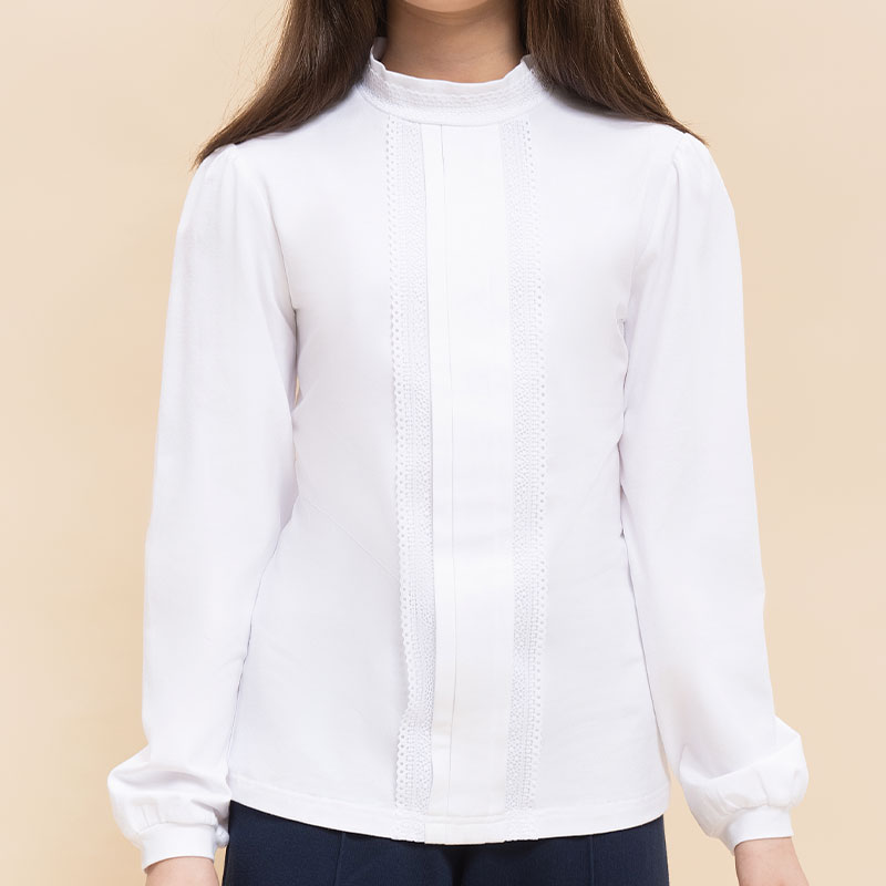 Состав: 93%хлопок 7%эластанОписание: Школьная блузка для девочки представляет собой идеальное сочетание комфорта и стиля. Этот трикотажный джемпер с небольшим воротником-стойкой идеально подходит для девочек с различными типами фигуры. Длинные рукава с элегантной сборкой по плечу и мягкой манжетой обеспечивают не только стильный вид, но и свободу движений. Блузка детская выполнена из высококачественного хлопка, что делает её мягкой и приятной на ощупь, а также обеспечивает хорошую вентиляцию, позволяя коже дышать. Декоративная центральная складка по переду и кружево по воротнику и вдоль складки добавляют блузке нежности и женственности. Джемпер детский доступен в нескольких универсальных цветах и легко сочетается с любыми нижними деталями гардероба. Блузка трикотажная подходит как для повседневного ношения, так и для особых случаев. Рекомендуемые инструкции по уходу: стирать при температуре не выше 30 °С, без предварительного замачивания, с изнанки, расправить перед сушкой. Пожалуйста, обратите внимание на таблицу размеров на фото перед выбором размера. Помните, что цвет товара на экране вашего устройства может незначительно отличаться от реального цвета изделия.