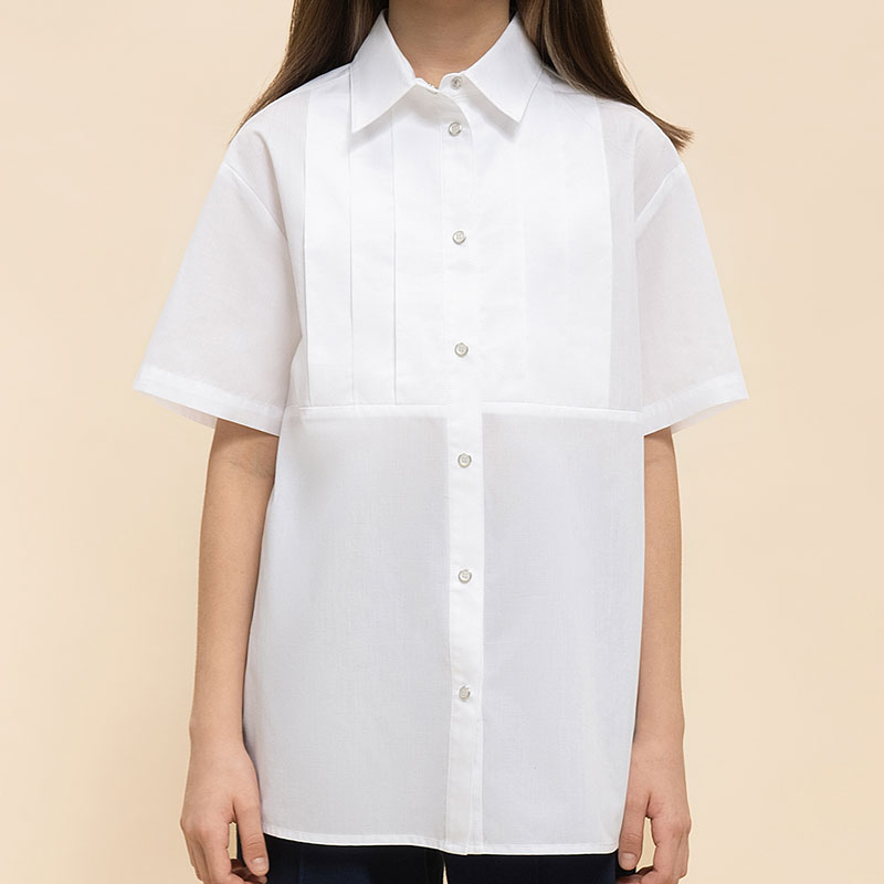 Состав: 60%хлопок 40%полиэстерОписание: Школьная блузка для девочки свободного кроя. Блузка детская с классическим отложным воротничком. Удобная центральная застёжка на кнопки, имитирующие пуговицы — ребёнок легко и быстро застегнёт и расстегнёт. Фишка модели — глубокие складки, заложенные в верхней части переда. — стильная деталь, выгодно отличающая эту модель от банальных однотонных блузок. В составе ткани преобладает качественный хлопок — блузка в школу для девочки мягкая, воздухопроницаемая и комфортная для ребёнка. Полиэстер помогает не терять форму и отличный внешний вид — изделие прослужит не один сезон. Школьная блузка лаконичного дизайна, без принта, её легко сочетать с различными брюками, юбками, сарафанами. Красивая и практичная блузка белая для девочки — подходит как для повседневной носки, так и для более торжественных случаев. Помните о правильном уходе за изделием: рекомендуется стирать при температуре не выше 30 °C, без предварительного замачивания, с изнанки. Это поможет сохранить качество и цвет блузки на долгое время. Не забывайте о выборе правильного размера. Используйте таблицу размеров на фотографии, чтобы выбрать подходящий вариант. Обратите внимание, что цвет товара на экране вашего устройства может отличаться от реального.
