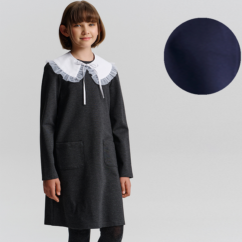 Состав: 60%вискоза 35%полиамид 5%эластан, вставка: 60%хлопок 40%полиэстерОписание: Идеальное платье для школы и не только! Стильное платье А-силуэта с длинными рукавами — настоящая находка для гардероба школьницы. Удобный крой не сковывает движений, а продуманные детали делают образ аккуратным и практичным. Застёжка сзади на пуговицу и небольшой разрез на спинке позволяют легко и быстро надевать платье через голову — особенно удобно в школьной суете. А в старших размерах (12–14 лет) предусмотрены вытачки для лучшей посадки по фигуре. Отдельная любовь — накладные кармашки спереди. Они не только украшают платье, но и становятся настоящей «тайной зоной» для мелочей: записки от подруг, заколки или маленький сюрприз. Съёмный воротничок на мягких завязках, украшенный кружевом, превращает повседневный наряд в почти праздничный. Надо — носим с ним, хочется проще — легко снимается. Платье выполнено из мягкого хлопкового трикотажа с добавлением полиэстера: оно дышит, держит форму, не мнётся и легко стирается — что особенно важно для школьной формы. Комфорт, стиль, универсальность — всё в одном платье, которое хочется носить каждый день! Используйте таблицу размеров на фотографии, чтобы выбрать подходящий размер. Обратите внимание, что цвет товара на экране вашего устройства может отличаться от реального.
