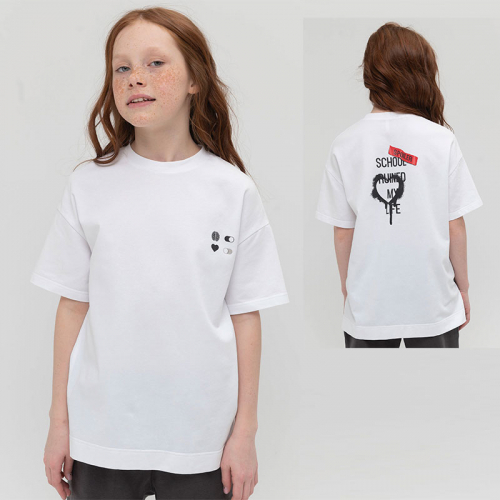Состав: 93%хлопок 7%эластанОписание: Школьная футболка для девочки из практичного мягкого трикотажа. Не потеряет первоначальный цвет и форму после стирок. Хорошо пропускает воздух и даёт телу дышать. Силуэт оверсайз и мягкая резинка внизу позволяют много прыгать, бегать, танцевать и просто гулять. Локальный принт на рукаве Это нормально: Совершать ошибки, Иметь плохие дни, Делать то, что тебе нравится. Спорт веселье музыка – любовь. Пожалуйста, забудь все правила. Будь собой (перевод) оценит каждый подросток.