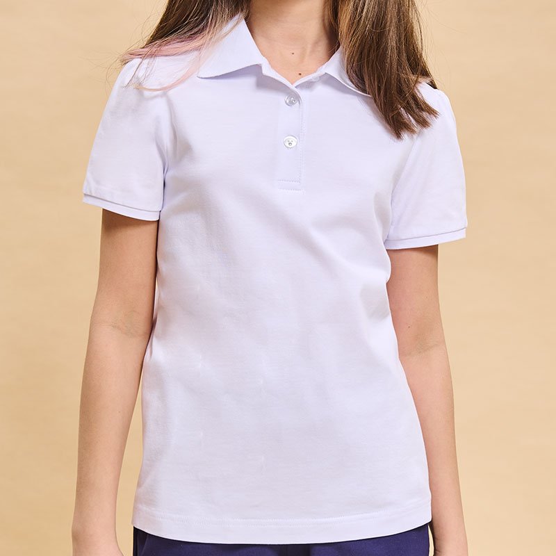 Состав: 93%хлопок 7%эластанОписание: Поло для девочки - идеальная модель для любого повода. Наша футболка поло для школы добавит изюминку в гардероб вашей дочери. Украшенная рукавами-фонариками умеренного объема, она является прекрасным компромиссом между спортивным и классическим стилями.Спереди джемпер поло застегивается на три пуговки, которые несут в себе скромный и привлекательный акцент в виде маленьких страз. Классический отложной воротник из эластичной рибаны не растягивается и надолго сохраняет первоначальную форму. Поло детское без декоративных элементов придает этой модели лаконичный вид. В составе ткани преобладает высококачественный хлопок плотностью 180 гр/м2., который обеспечивает отличную воздухопроницаемость, делая носку комфортной в любую погоду. Эластан в составе помогает сохранить первозданный вид футболки для девочки на протяжении долгого времени. Футболка поло для девочки представлена в универсальном белом цвете, легко сочетается с различными вариантами нижней одеждой. Рекомендуемый уход: стирать при температуре не выше 30 °С, без предварительного замачивания, с изнанки, расправить перед сушкой. Это поможет сохранить качество и цвет на длительное время. Выбирайте нужный размер по таблице размеров на фото. Цвет товара на экране вашего устройства может отличаться от цвета изделия вживую.