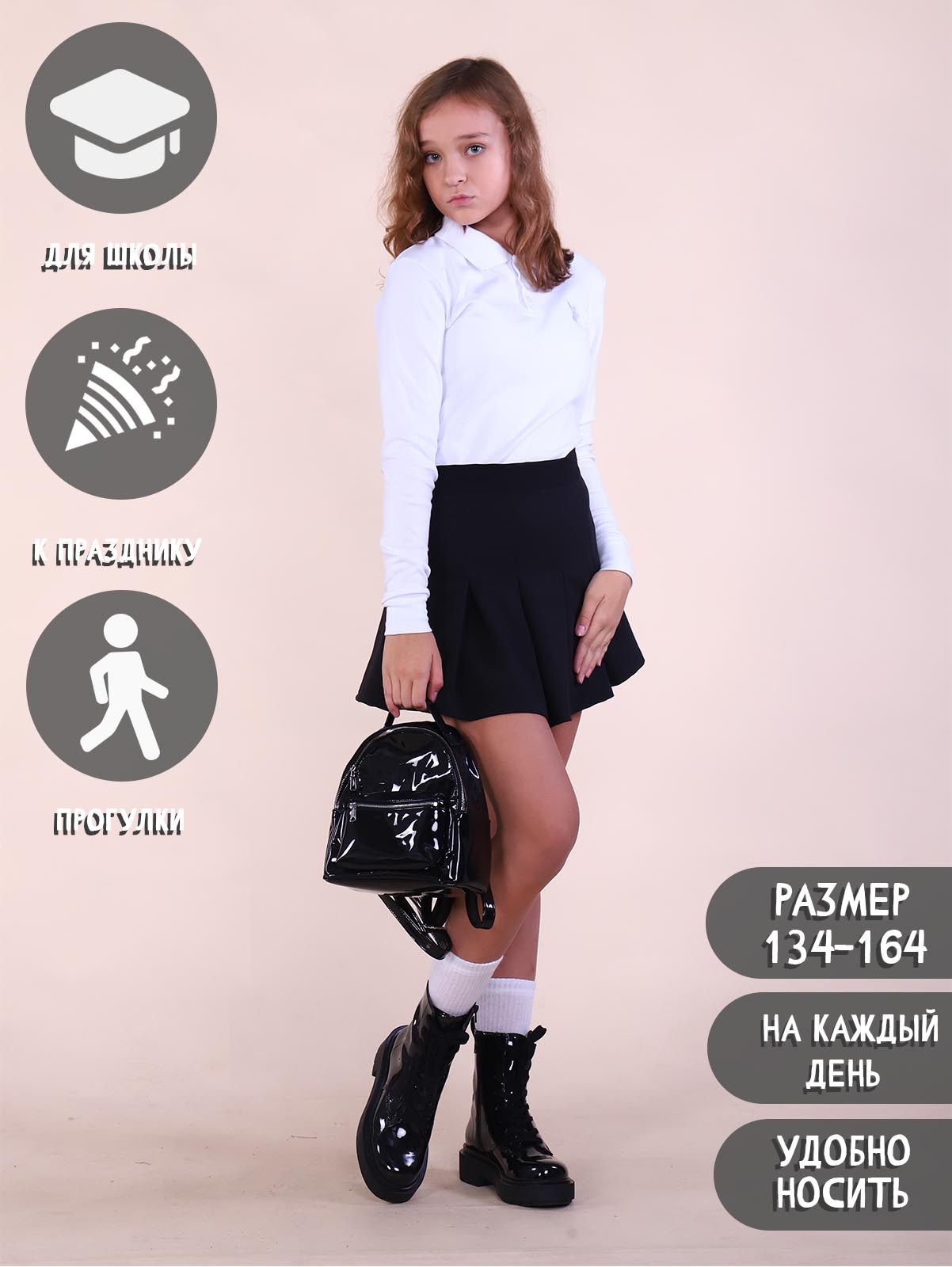Базовая подростковая юбка станет основой ваших повседневных образов. Практичная юбка для девочки в сочетании с классическим кроем и идеальной посадкой подойдет для школы, прогулки или для похода в кафе. Сочетайте юбку с ботинками или обувью без каблука для повседневных образов, добавляя водолазку, худи или свитшот.