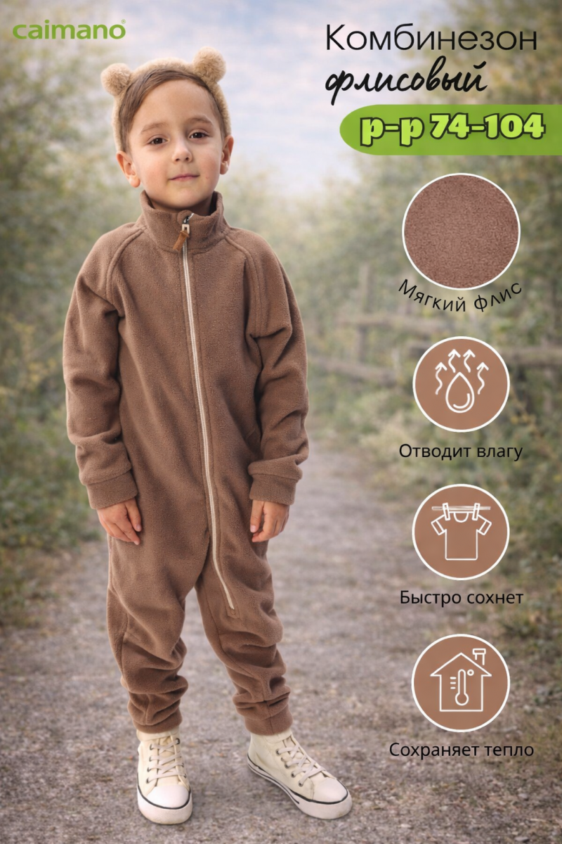 Весна, Демисезон, Осень, Зима Комбинезон-поддева Caimano Jerry из мягкого флиса. Комбинезон подходит как промежуточный слой под верхнюю одежду, а летом как самостоятельный вариант для прогулок в прохладные дни. Ткань специальной обработки `антипиллинг` предотвращает скатываемость в процессе носки, что помогает изделию сохранить опрятный внешний вид.