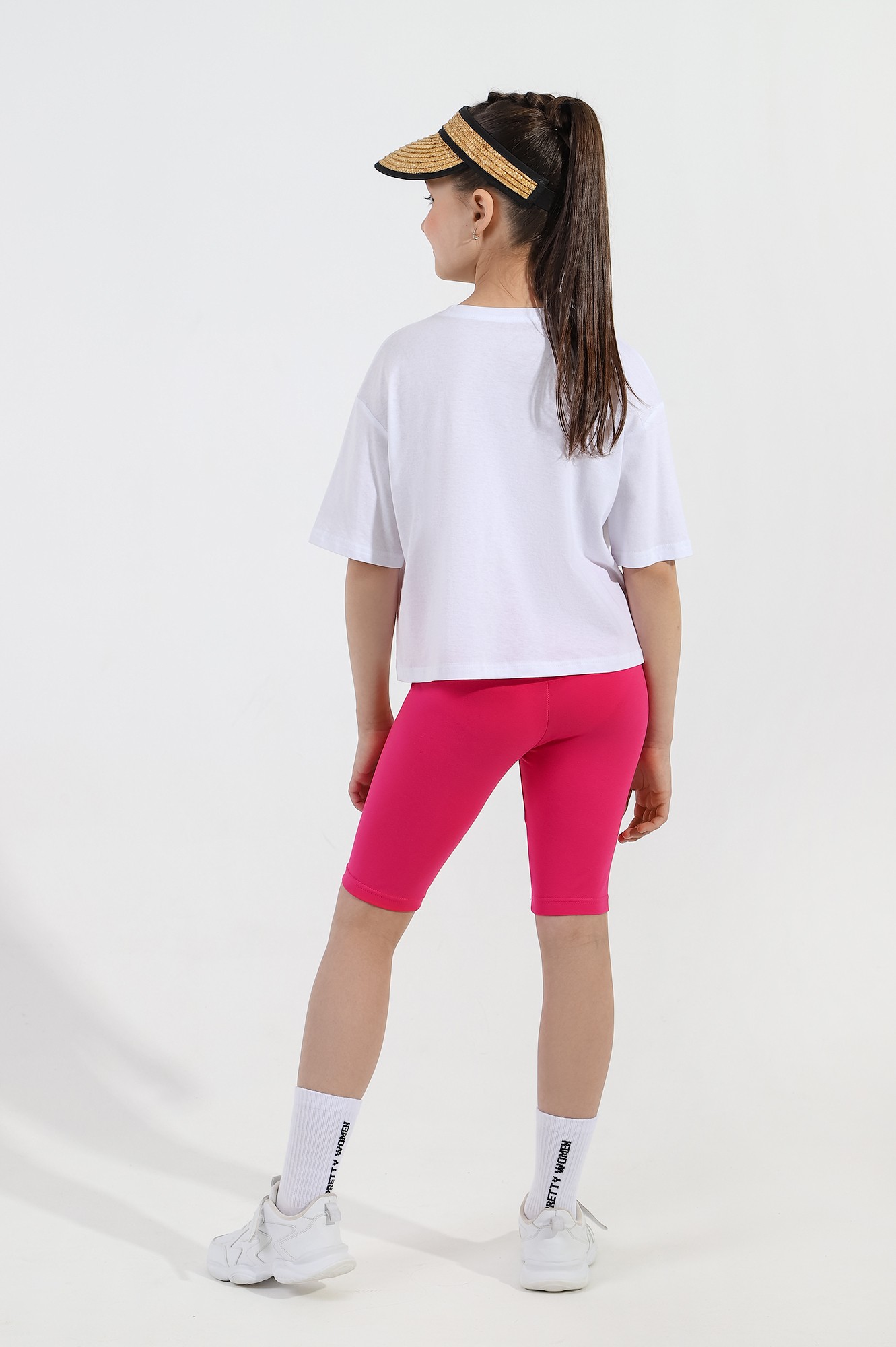 Бриджи-велосипедки для девочки из трикотажного полотна "кулирка с лайкрой" классические, плотного прилегания к телу.
