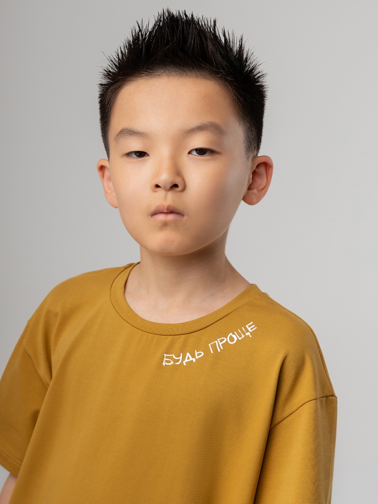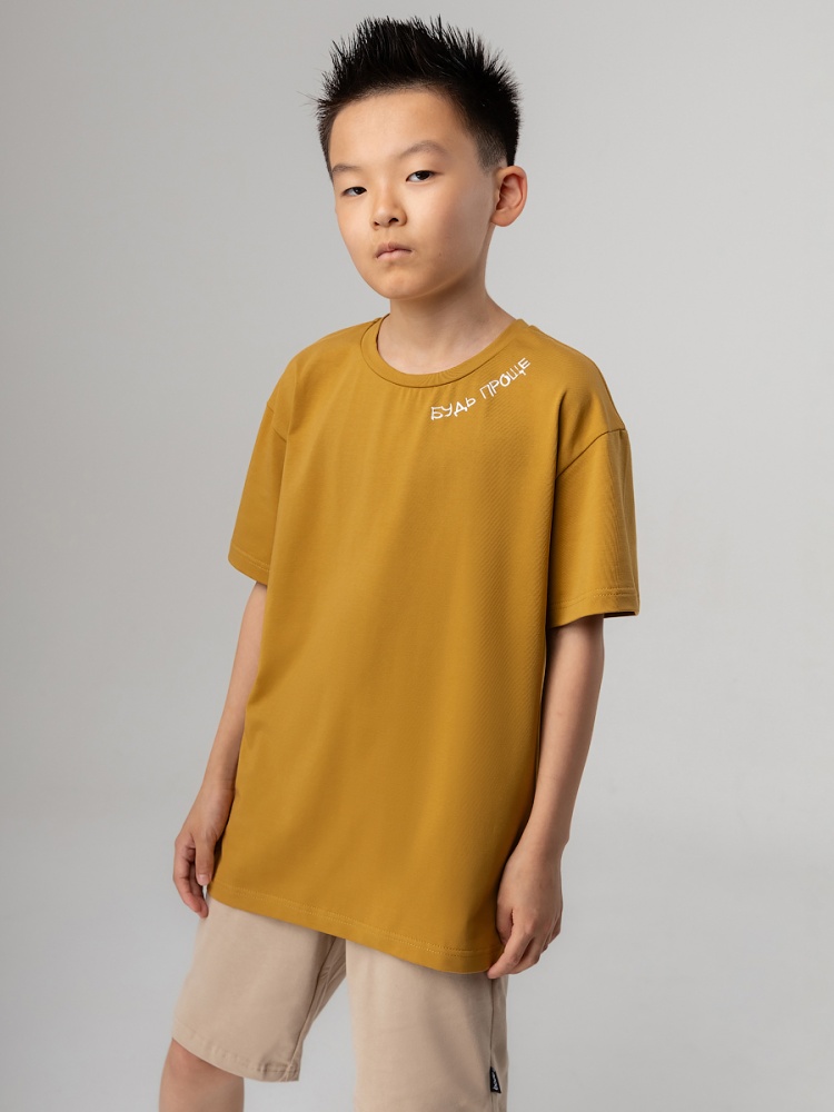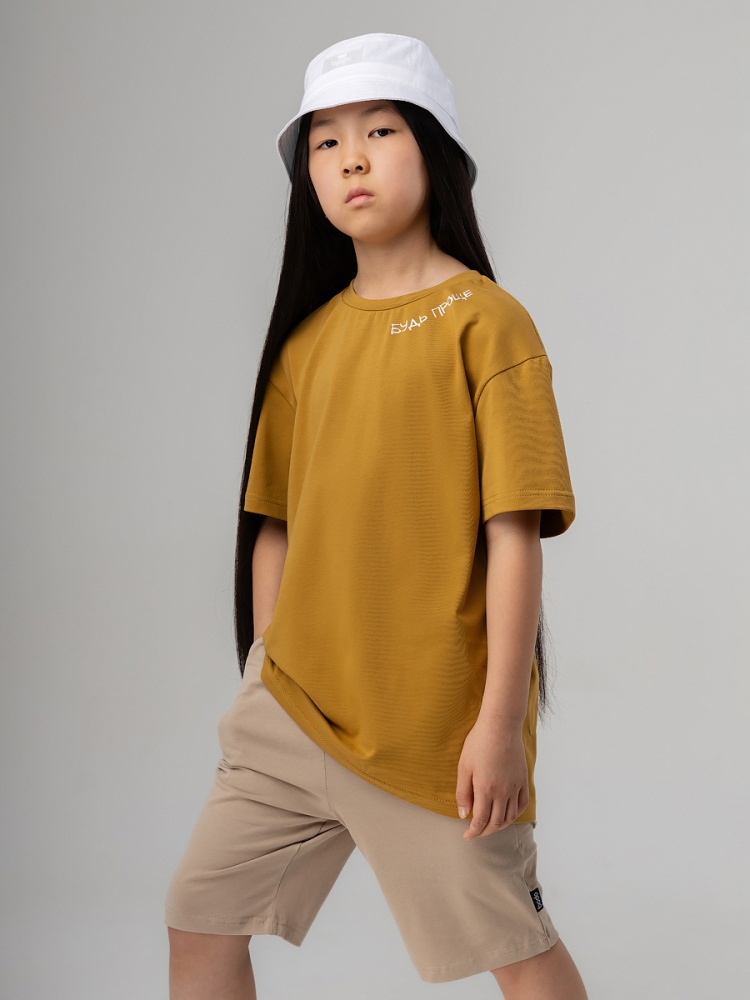 Материал кулирная гладь Состав 92% хлопок 8% лайкра Футболка для детей школьного возраста. Футболка свободного силуэта с втачным коротким рукавом. Горловина футболки округлой формы. Низ изделия прямой. Состав: кулирная гладь 92% хлопок 8% лайкра