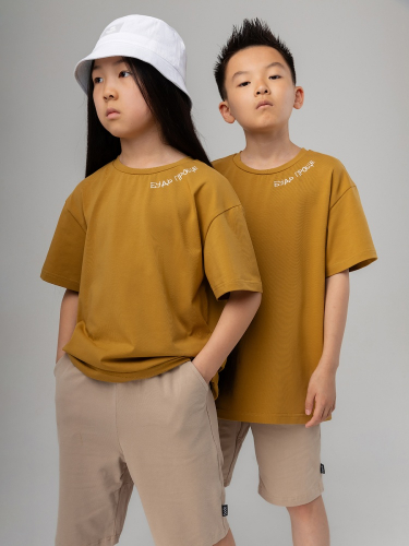 Материал кулирная гладь Состав 92% хлопок 8% лайкра Футболка для детей школьного возраста. Футболка свободного силуэта с втачным коротким рукавом. Горловина футболки округлой формы. Низ изделия прямой. Состав: кулирная гладь 92% хлопок 8% лайкра