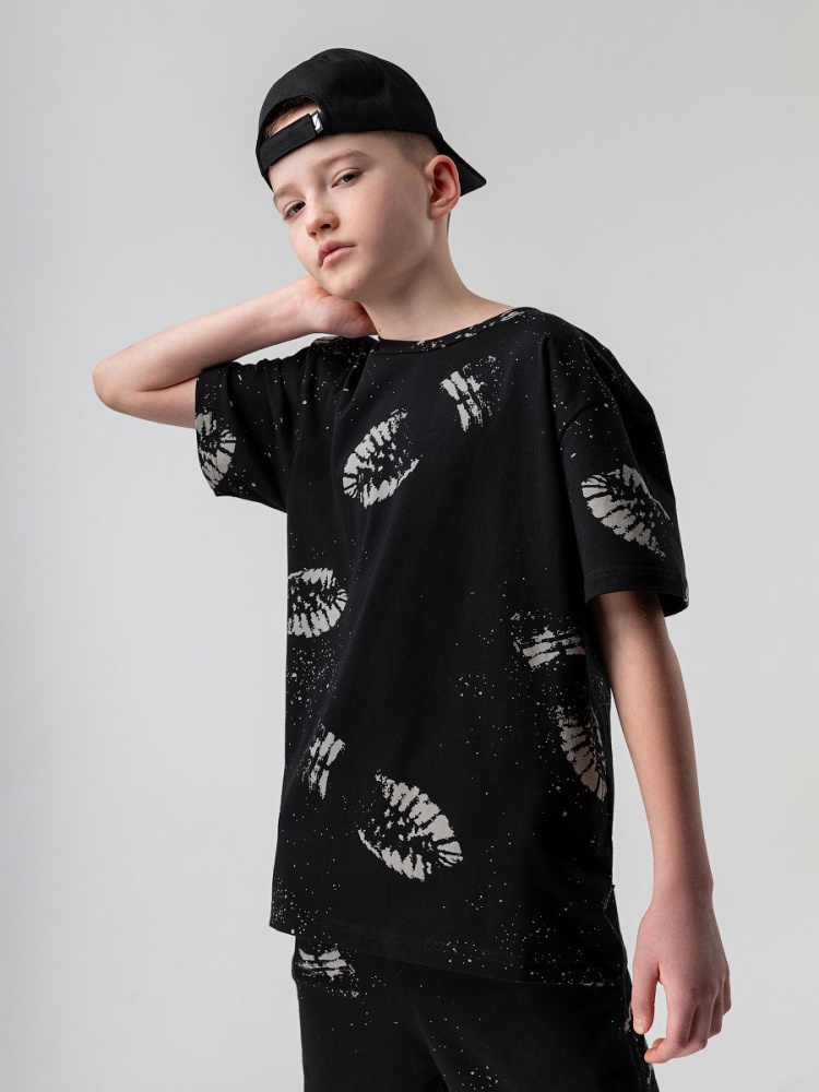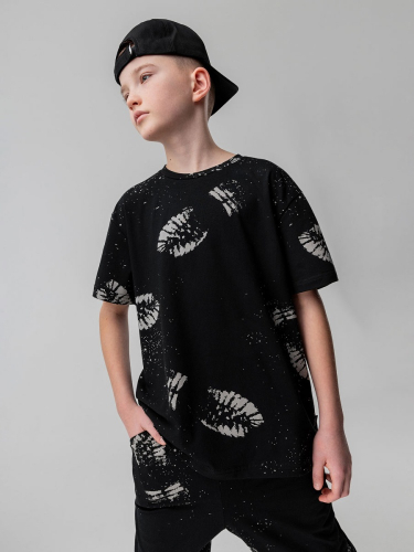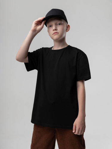 Материал кулирная гладь Состав 92% хлопок 8% лайкра Футболка для детей школьного возраста. Футболка свободного силуэта с втачным коротким рукавом. Горловина футболки округлой формы. Низ изделия прямой. Состав: кулирная гладь 92% хлопок 8% лайкра