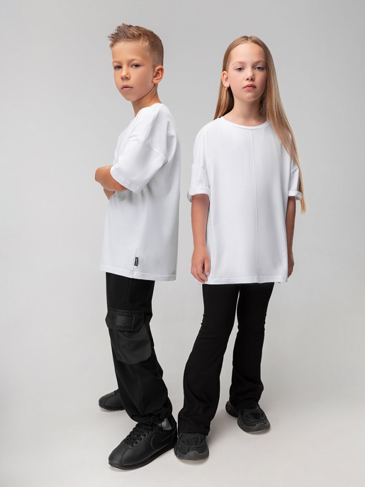 Материал кулирная гладь Состав 92% хлопок 8% лайкра Футболка для детей дошкольного возраста. Футболка свободного силуэта с втачным коротким рукавом. Горловина футболки округлой формы. Состав: кулирная гладь 92% хлопок 8% лайкра