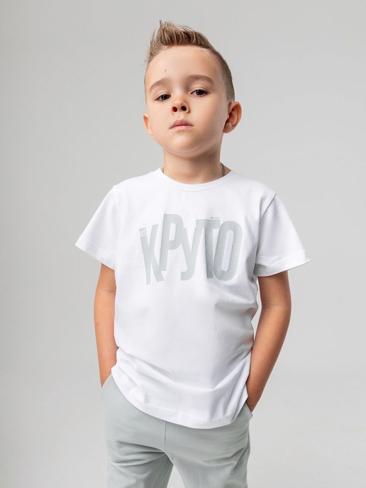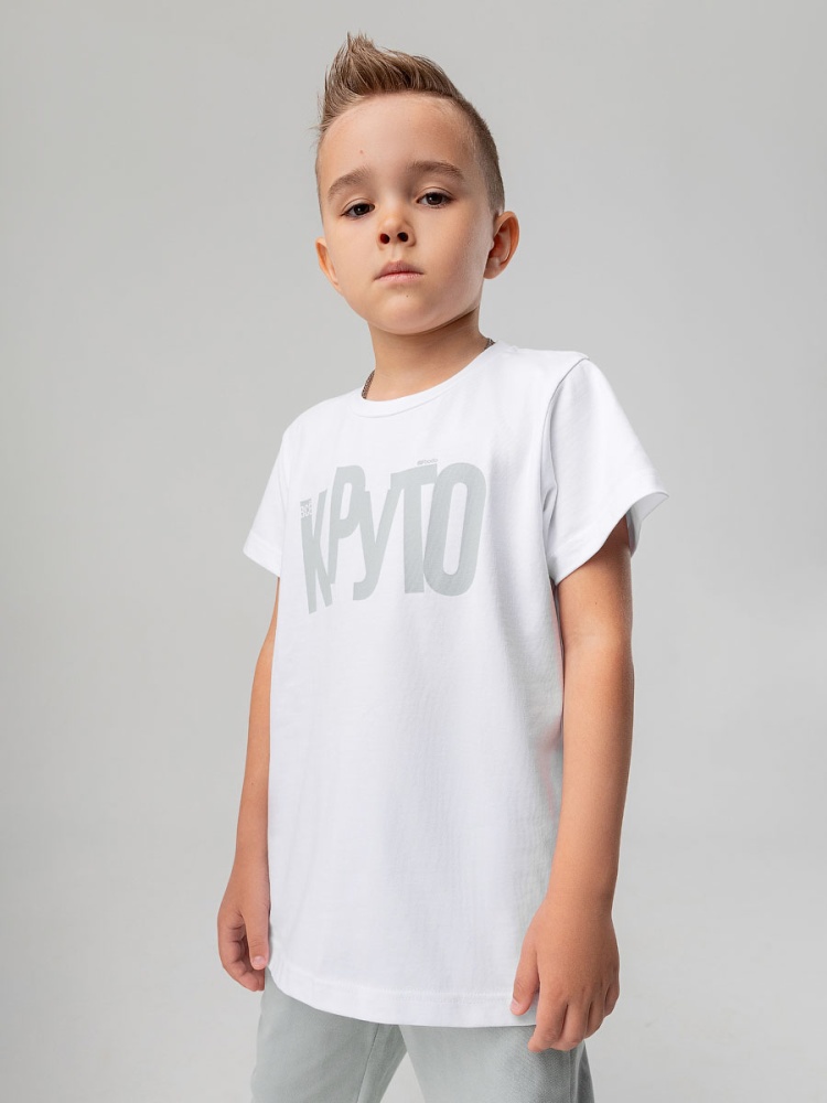 Материал кулирная гладь Состав 92% хлопок 8% лайкра Футболка для детей дошкольного возраста. Футболка свободного силуэта с втачным коротким рукавом. Горловина футболки округлой формы. На полочке нанесена печать.