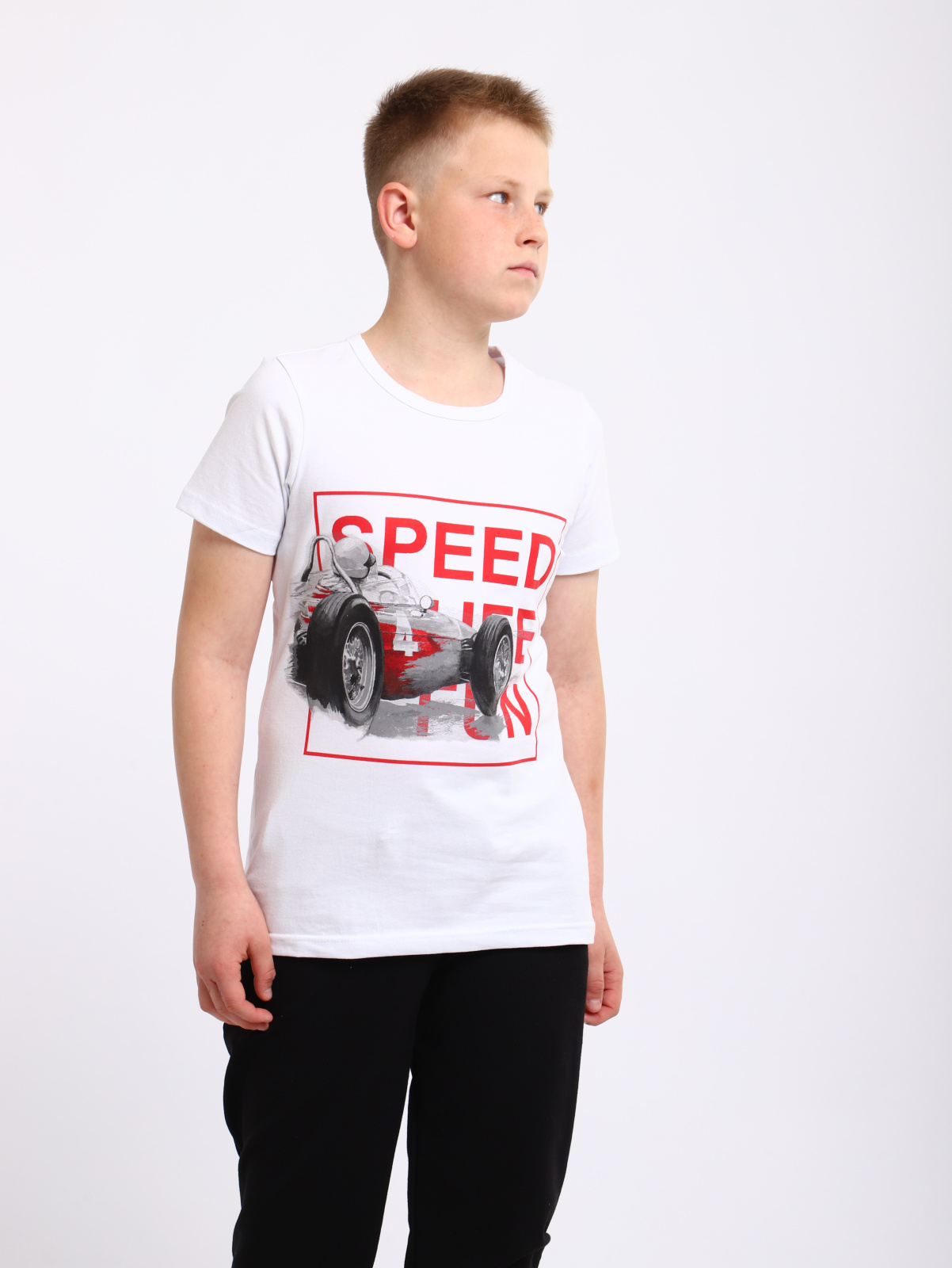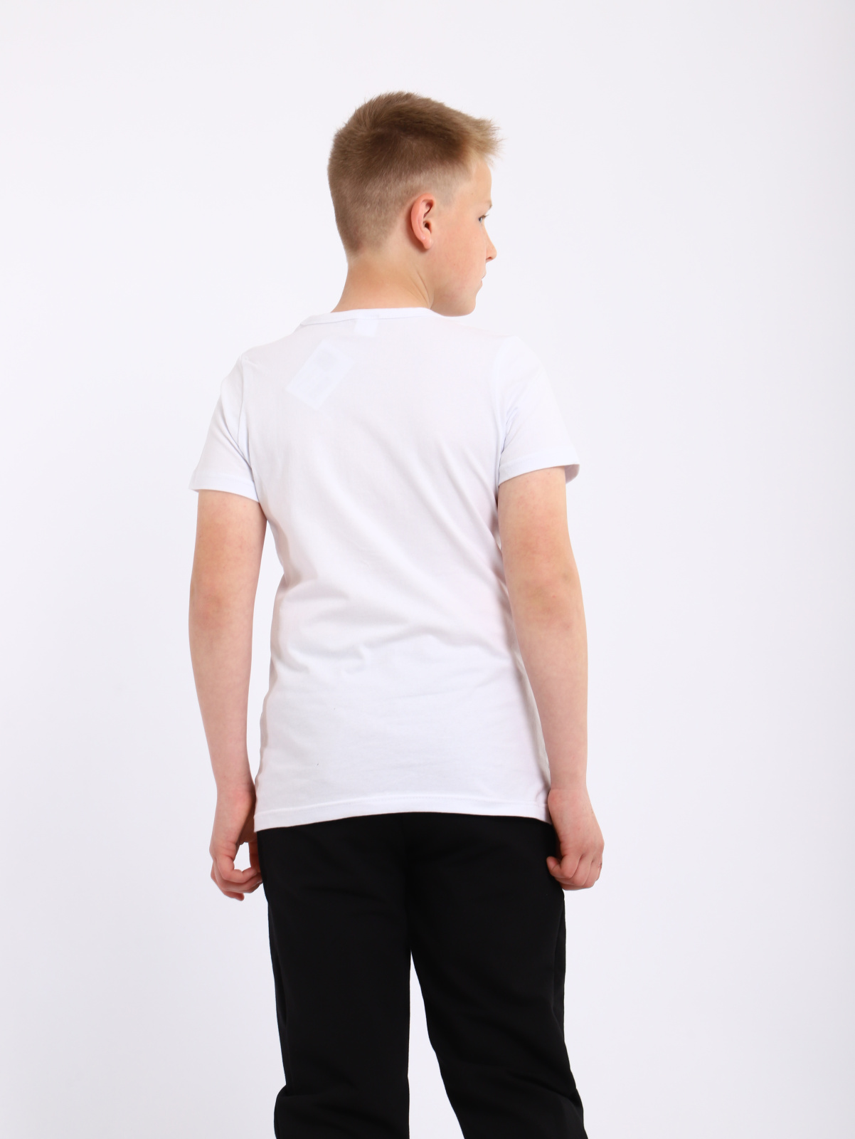 Детская футболка сшита из легкой, мягкой, хлопковой ткани-трикотажа, приятна к телу. Модный принт добавляет заряд бодрости и уверенности в повседневный образ, незаменимая вещь в гардеробе стильного подростка.