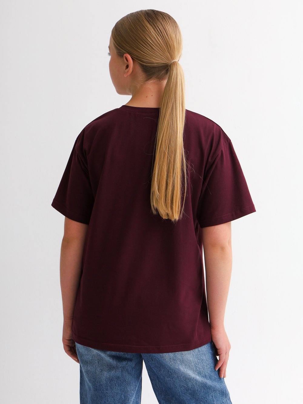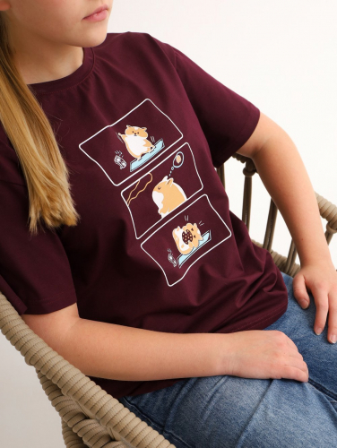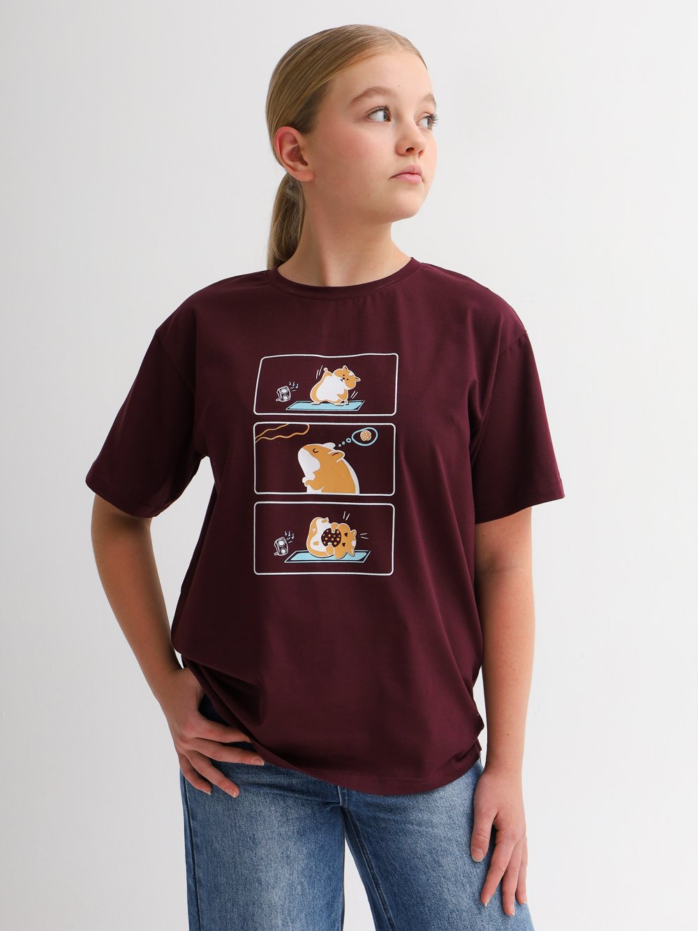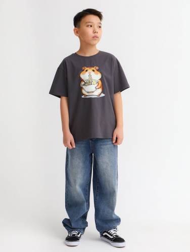 Футболка умеренного объема с округлым вырезом горловины и стильным принтом.