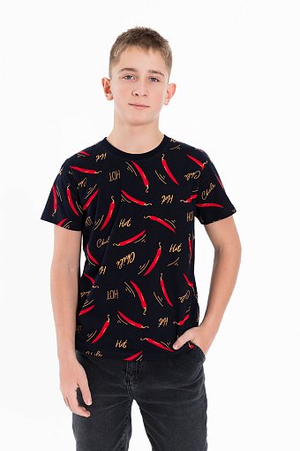 Футболка из кулирки. Круглый вырез горловины, втачной рукав.