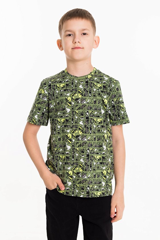 Футболка из кулирки с лайкрой. С коротким рукавом и круглым вырезом горловины.